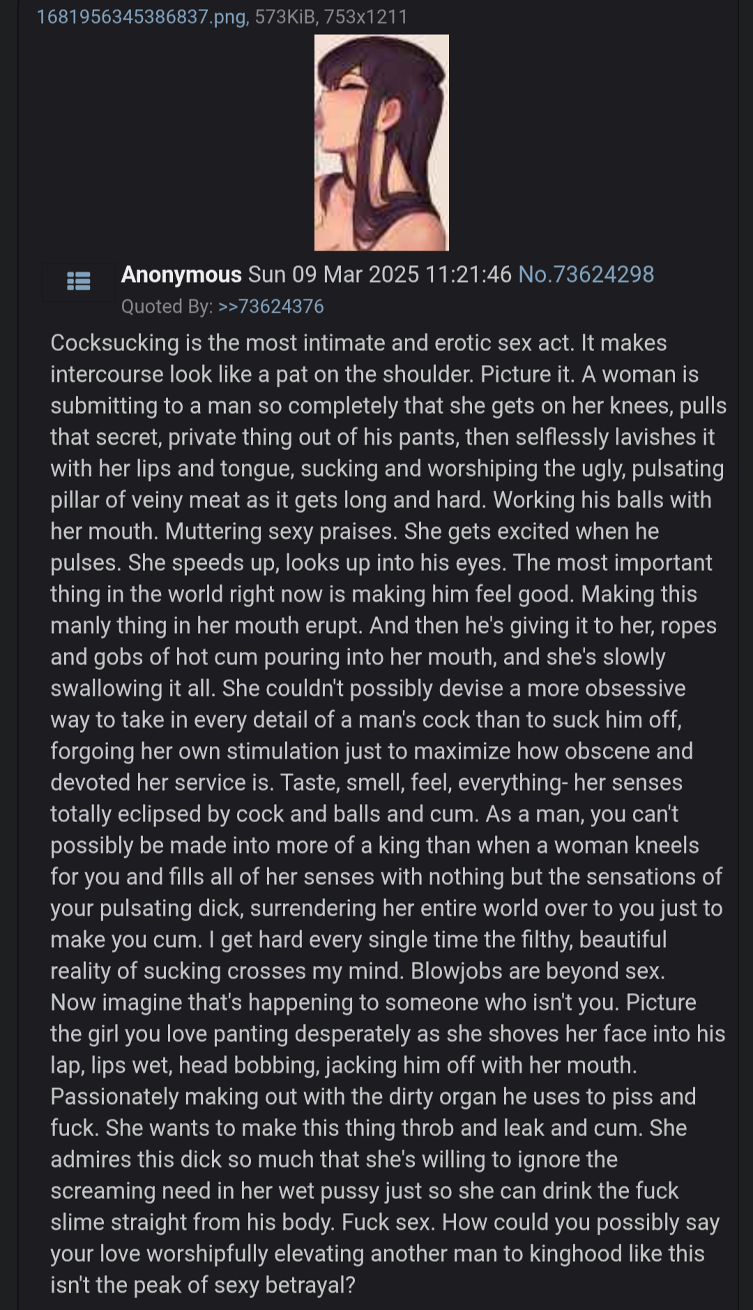 Blowjob cucking is the best, and the total disregard for your POV is extra hot. Plus, the framing kind of implies she's being enveloped by him.
