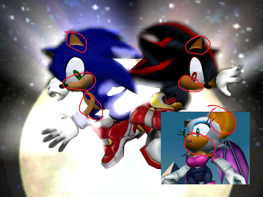 >>80539950>Rouge and Shadow have identical muzzle skin toneShe's darker than him