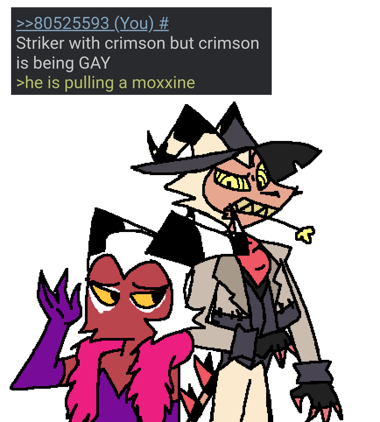 >>80545705Thank you so much! u do the good works! i like to imagine this is another hair-brained crimson,