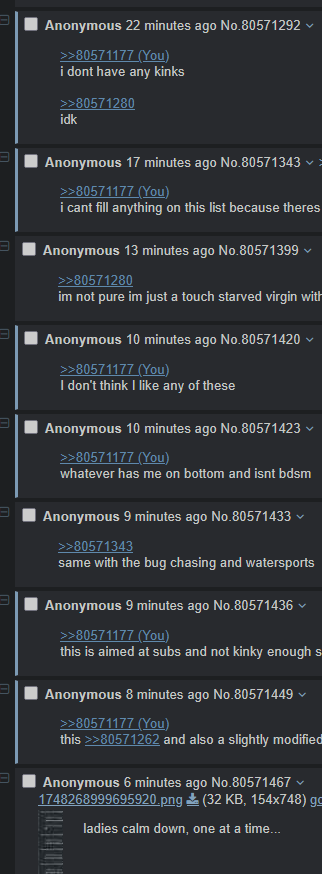 >>80571177i dont have any kinks >>80571280idk