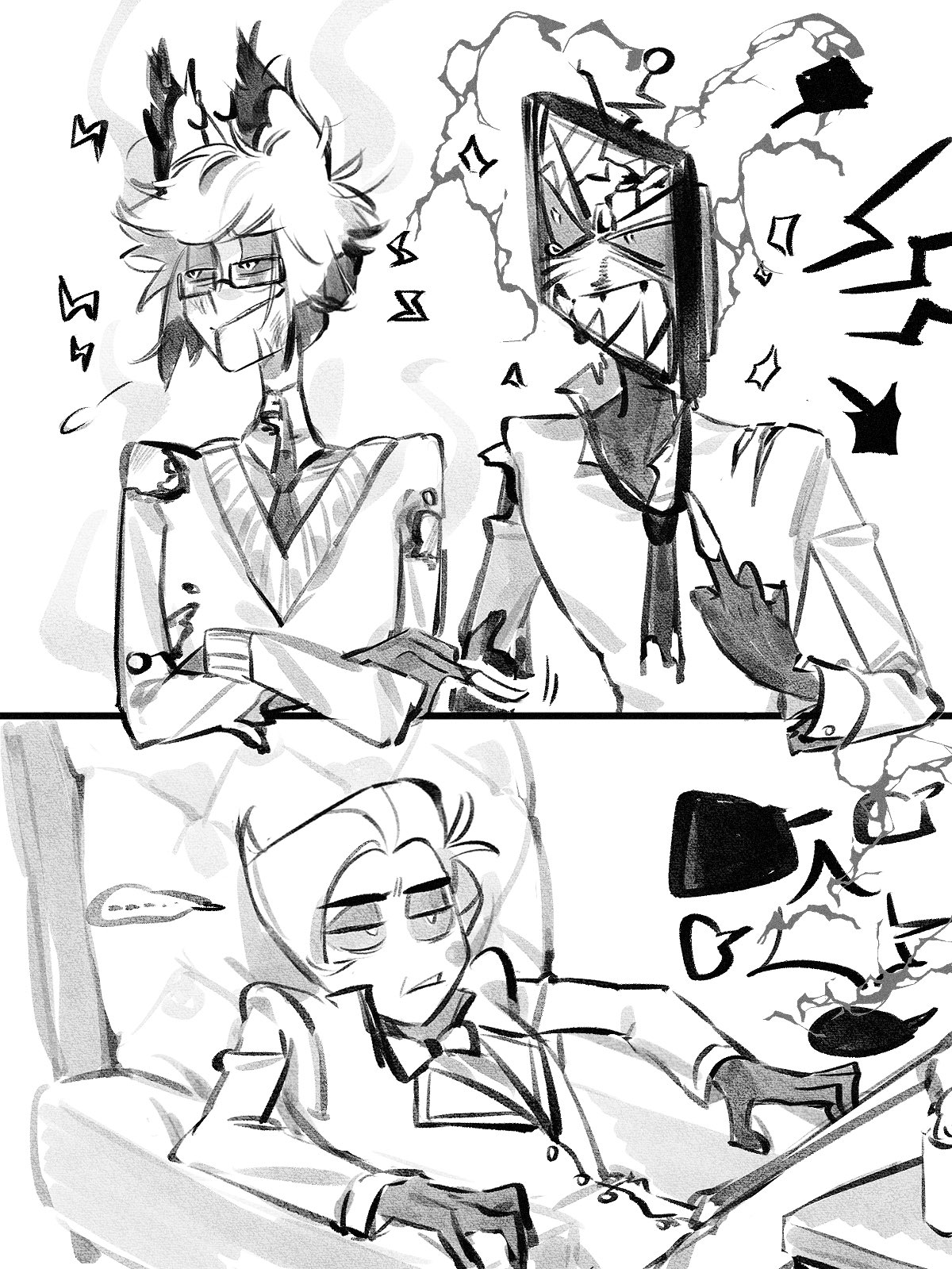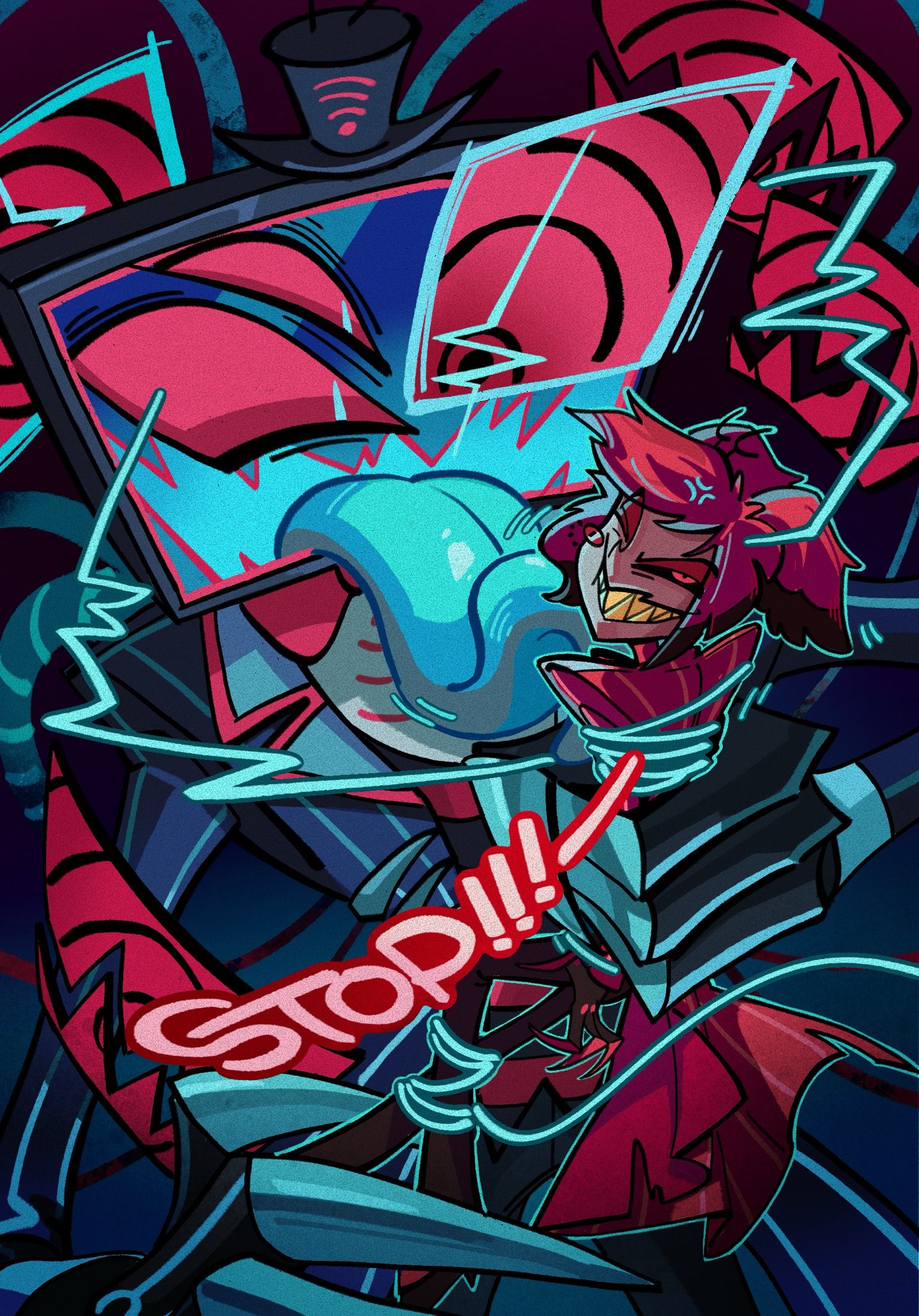 >literally just noticed Vox actually pushes Alastor away from Lucifer when he shows up to get them to stop talking