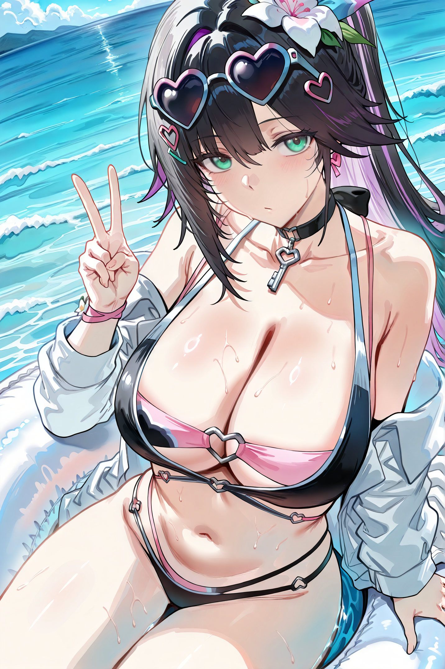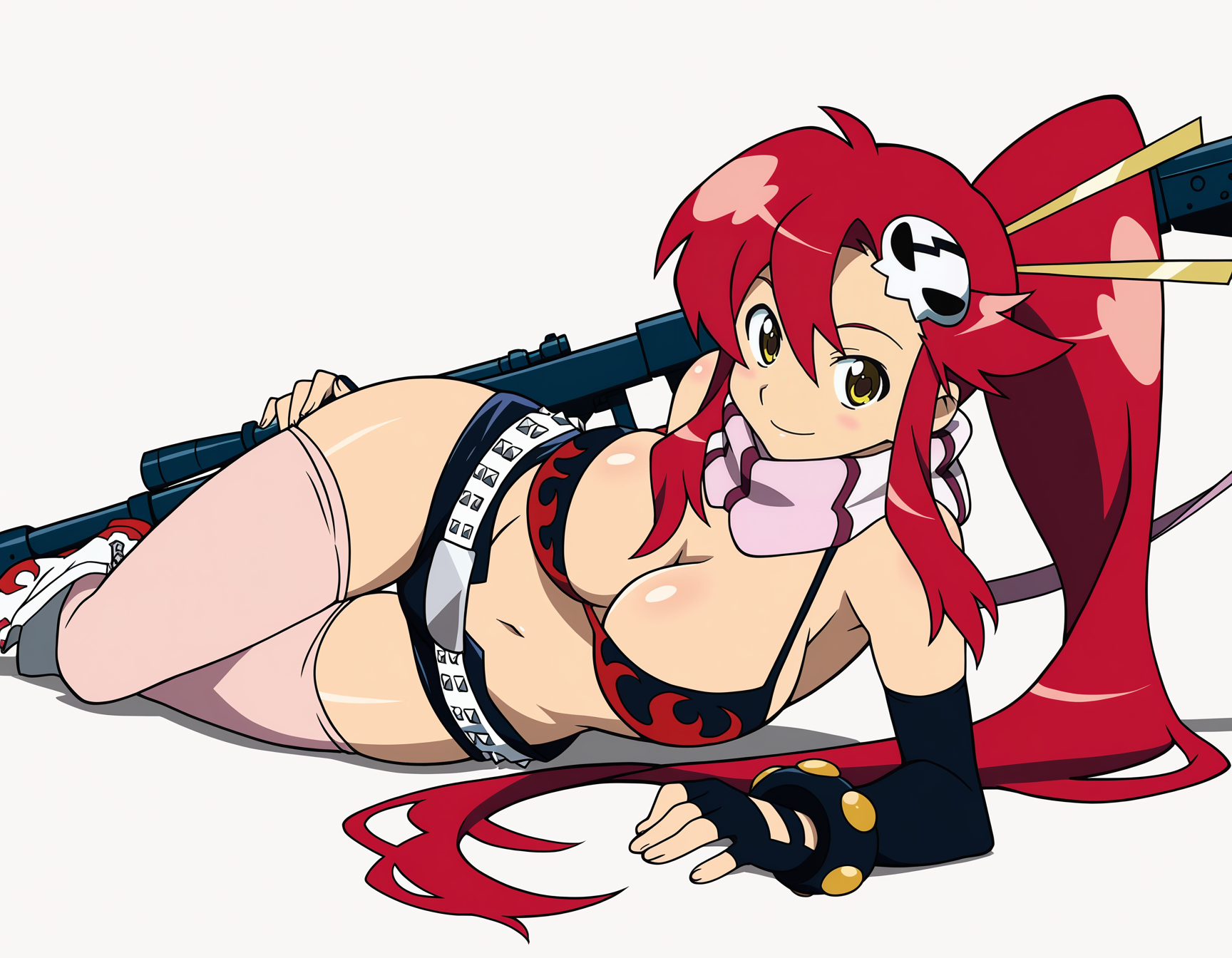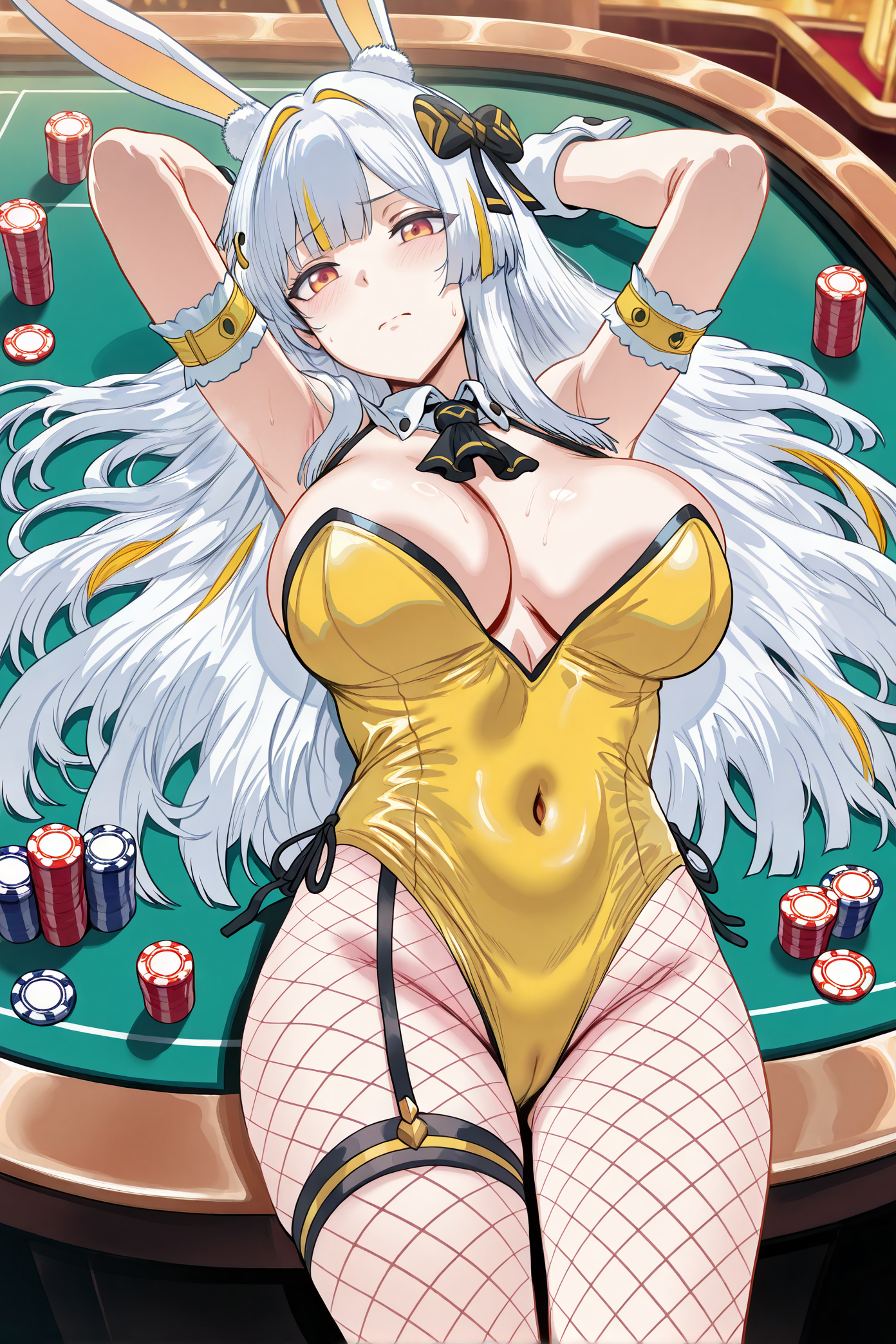 >>80577655Lillie only wearing black stockings and matching arm gloves, with a choker, heels, and a tiara, on a rooftop, smoking. At night