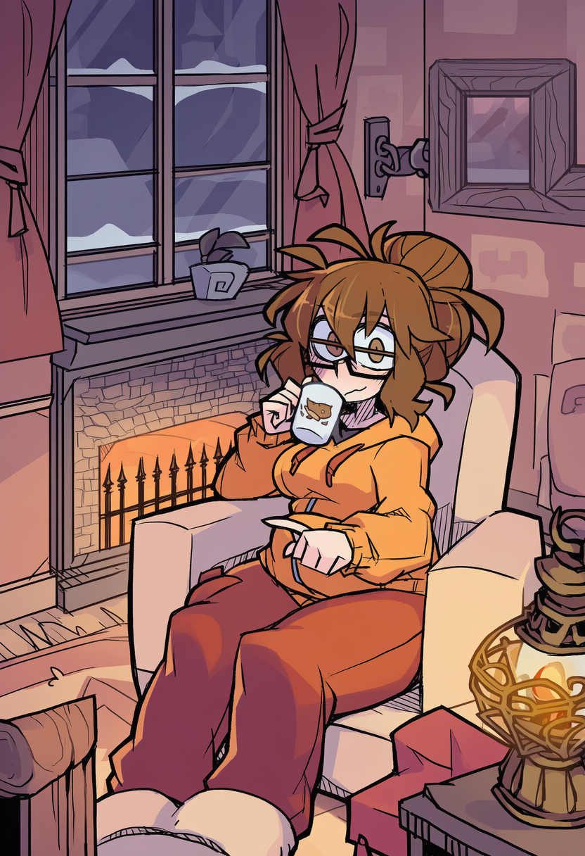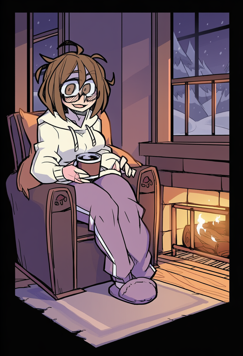 >>80581533needs her sitting in an armchair by a fireplace while it's snowing outside and sipping a mug of hot drank