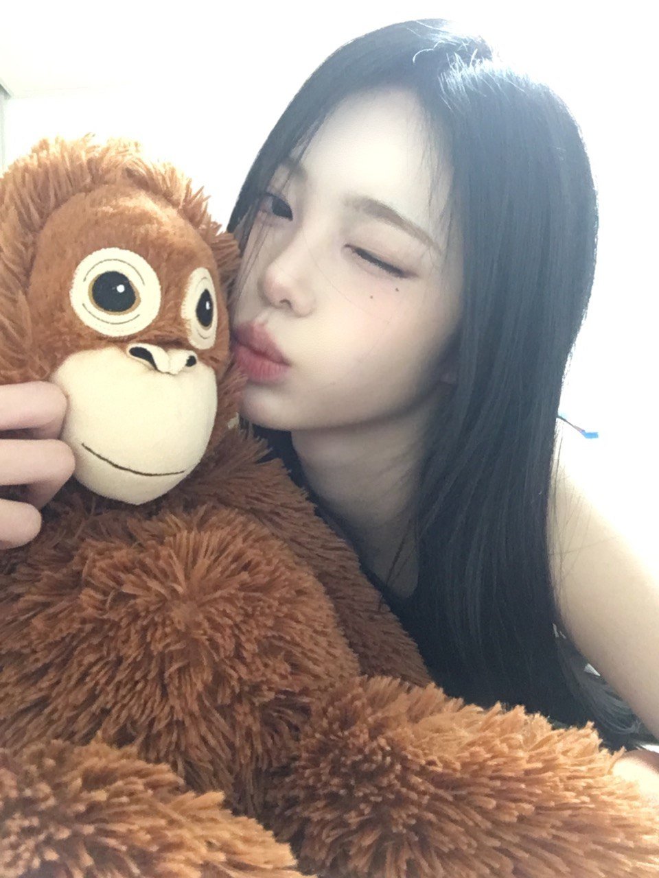ian is goonbaiting again. this time shes cuddling a monkey doll and i bet she humps it at night