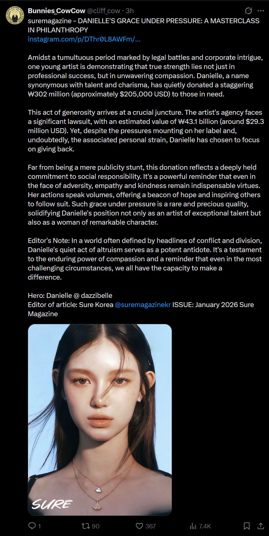 danielle donates to those in needand hybe tries to punish her for ithybe needs to pay