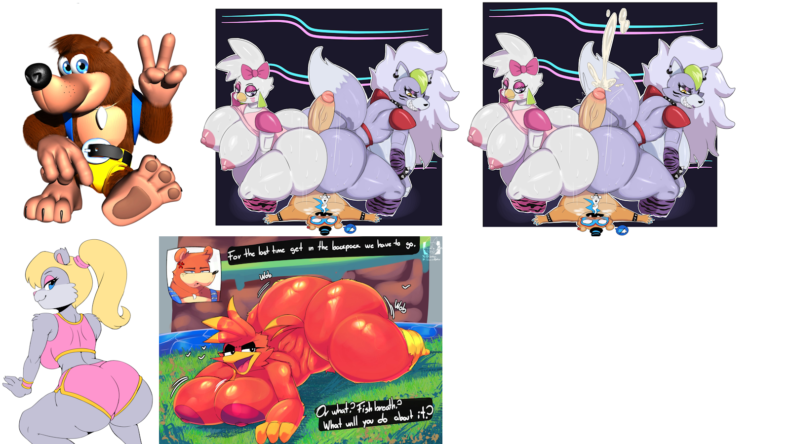 >>80611840Requesting Banjo getting a double buttjob from a sexy Kazooie and Berri