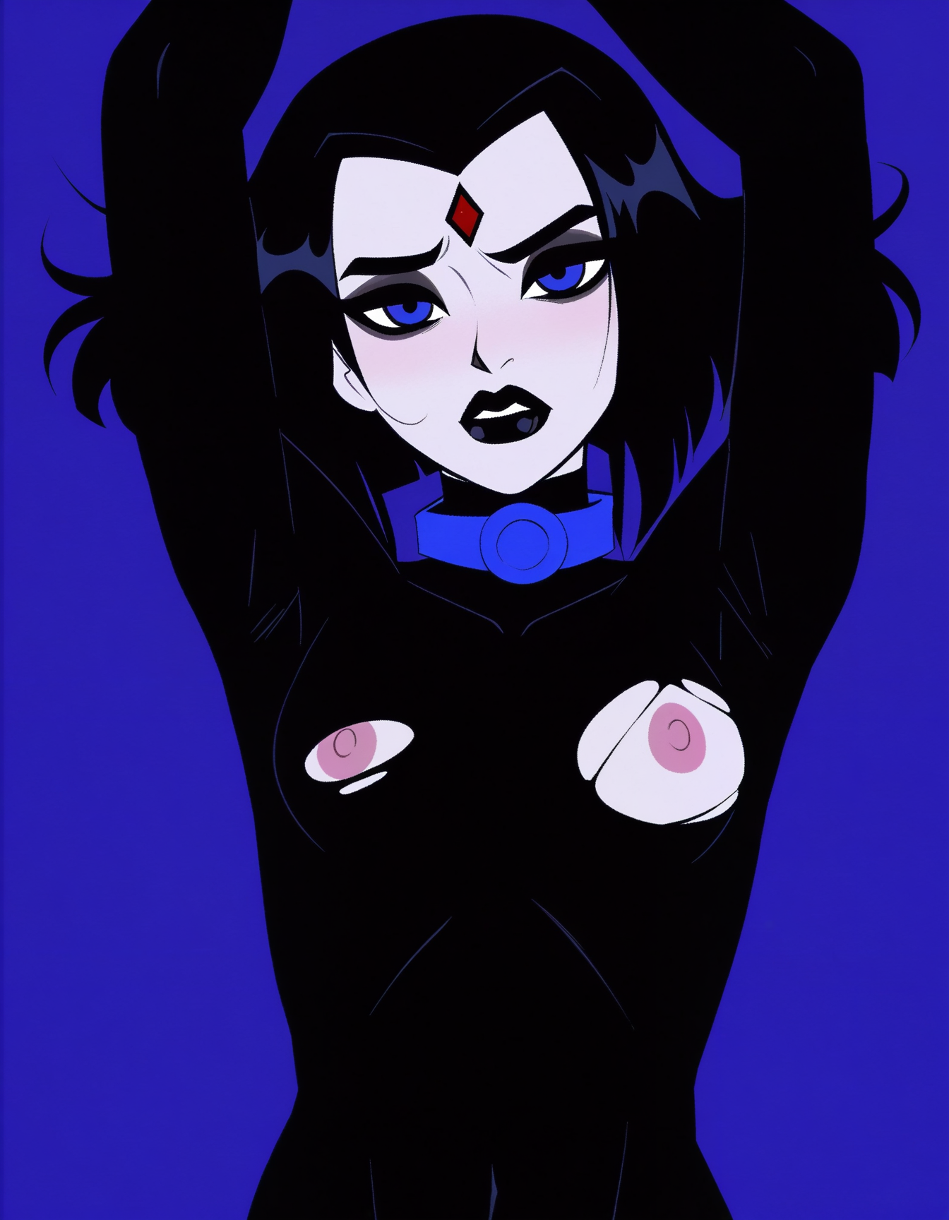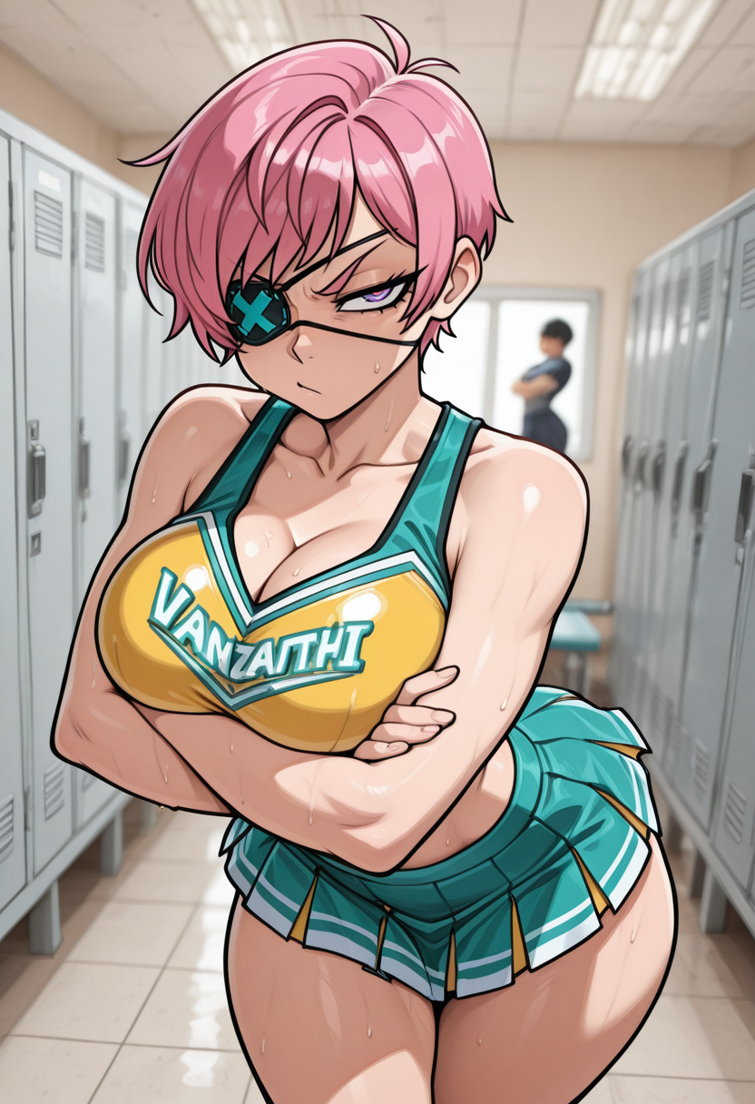 >>80615902in heels too? you know me well.Can you make her have tan around boobs and tummy and black lipstick. Goth toph is my fav.