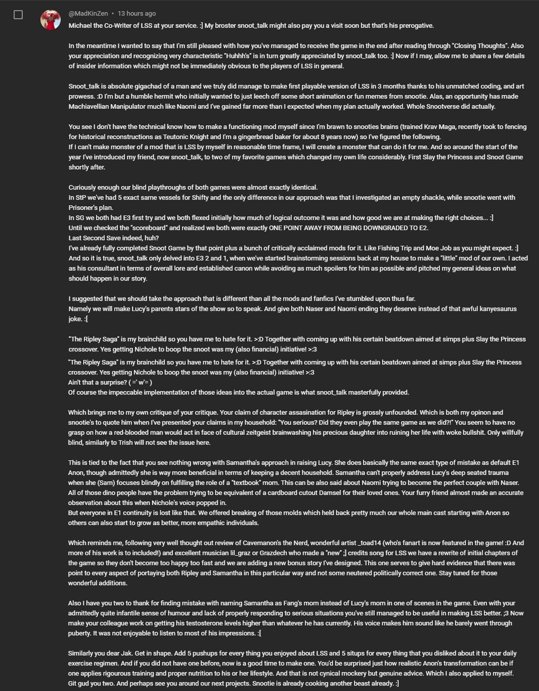 >>80642438Or maybe they simply couldn’t be arsed with the community anymore and are focused on their new shiny game they’re still making?With the LSS shit they pulled, I doubt their peeve with the community is the perceived lack of posting the two characters that literally get posted the most.