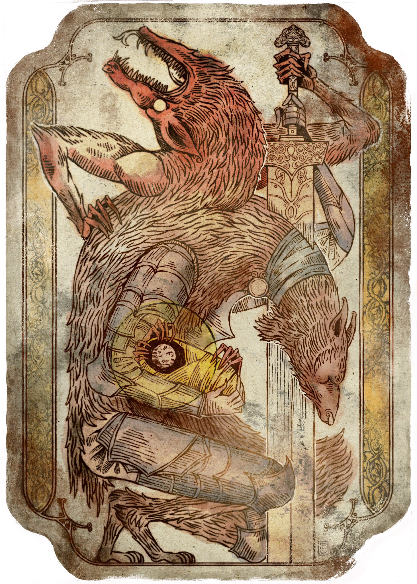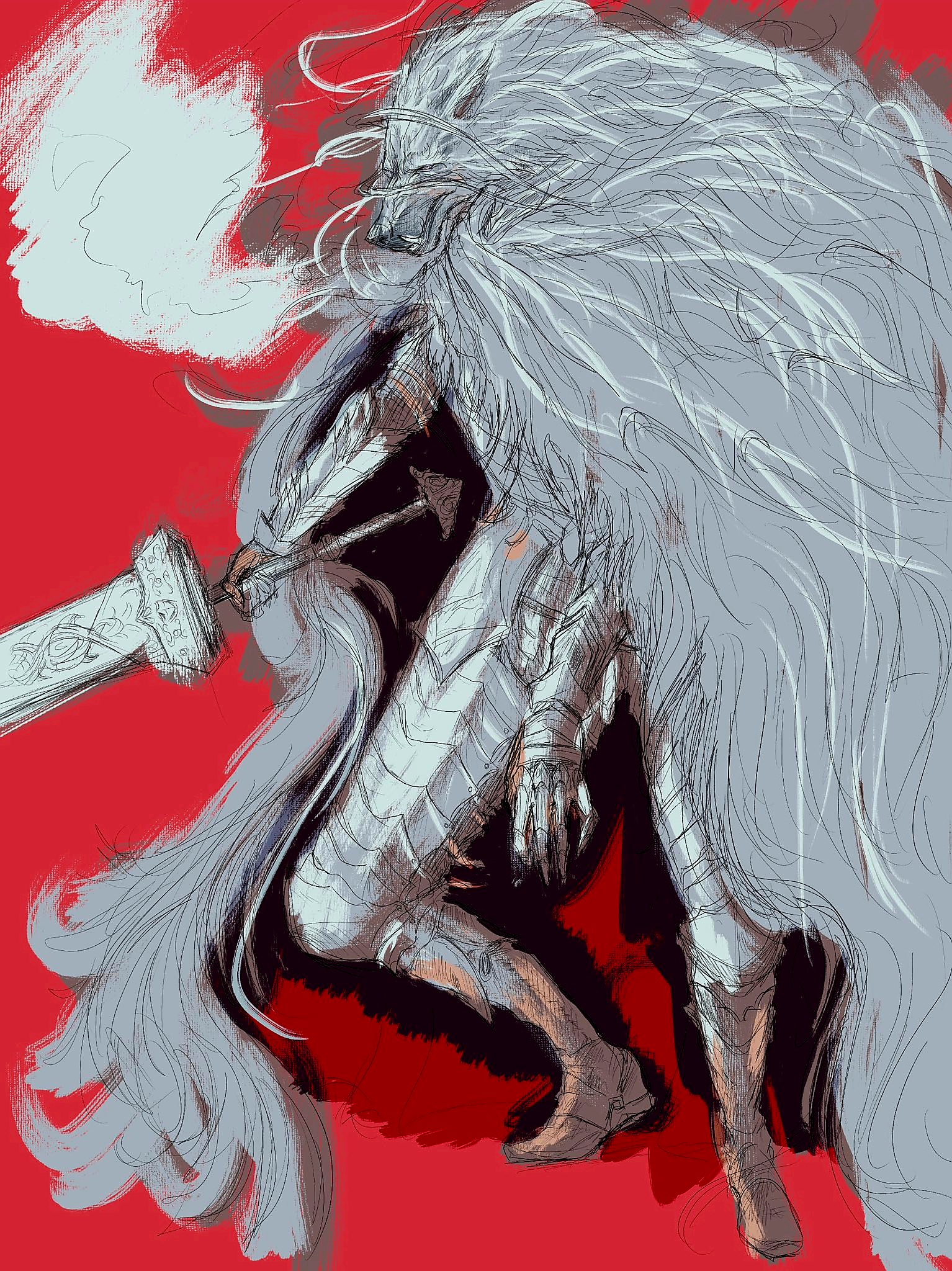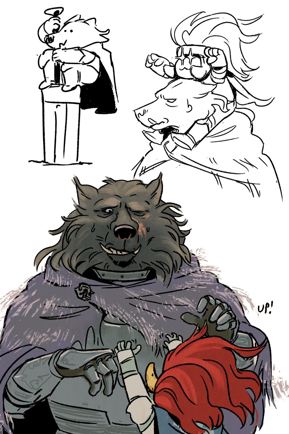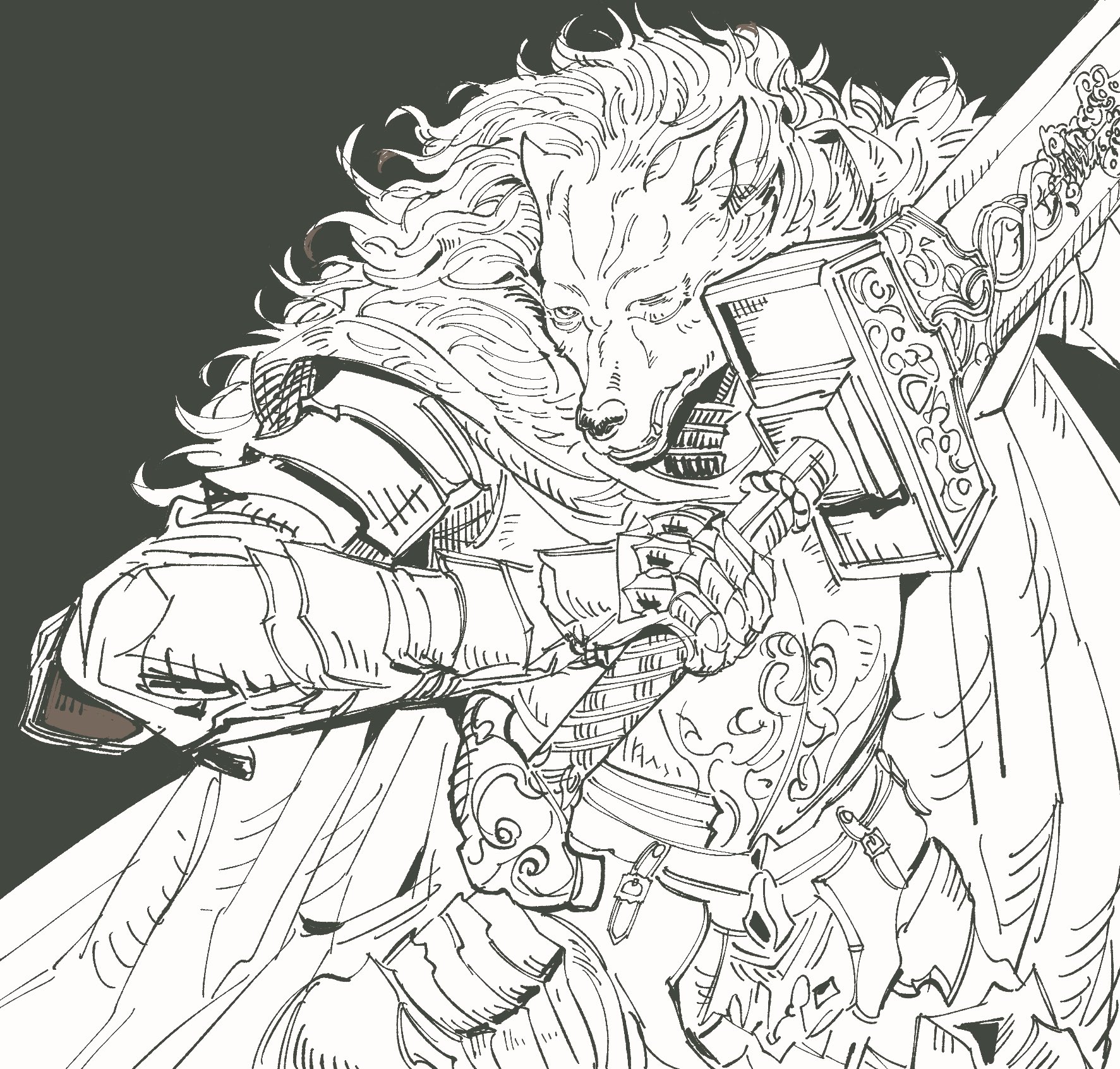 >>80643075To think about a simple sea creature that could obtain such power.... If only I could decipher your language and display of lights....>[A fire princess and... that. Off in the distance, approaching the pair.]Oi! Maiden in red! I reckon you look lost, pay no mind to the Goliath behind me. He prefers solitude.>>80643094Super destroyer.....? Sounds unpleasant, just from the name only.>[Freeze dried? Not that sounds really unpleasant.]You do not need a wolf to tell you that feasting on anything frozen is discomforting. Even if your survival depends on it. If I may be a little blunt, you seem to be a woman of action. I cannot picture you settling down, even for a few moments.>>80643162Right! The plan of attack!>[.....]What was it again...? Oi, lass, what was it again->[Annnnd all of them are sleeping. Just wing it, Blaidd.]>>80643220I have my own sword. Yet I am curious to see this one in action. You both should take turns!>[From excitement to confusion. Once the """"Holy"""" sword was removed.]