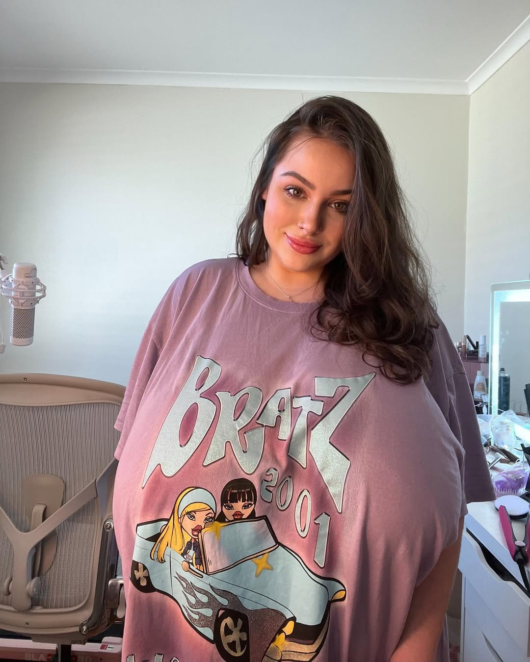 I have a general request for some picturesOne of my favorite aspects of some really nice big breasts is seeing them uncaged from a tight bra and covered in a loose shirt or sweater.Where even without support they're still making noticeable impressions in the fabric and tenting it over the belly.Anyone have pictures of ?