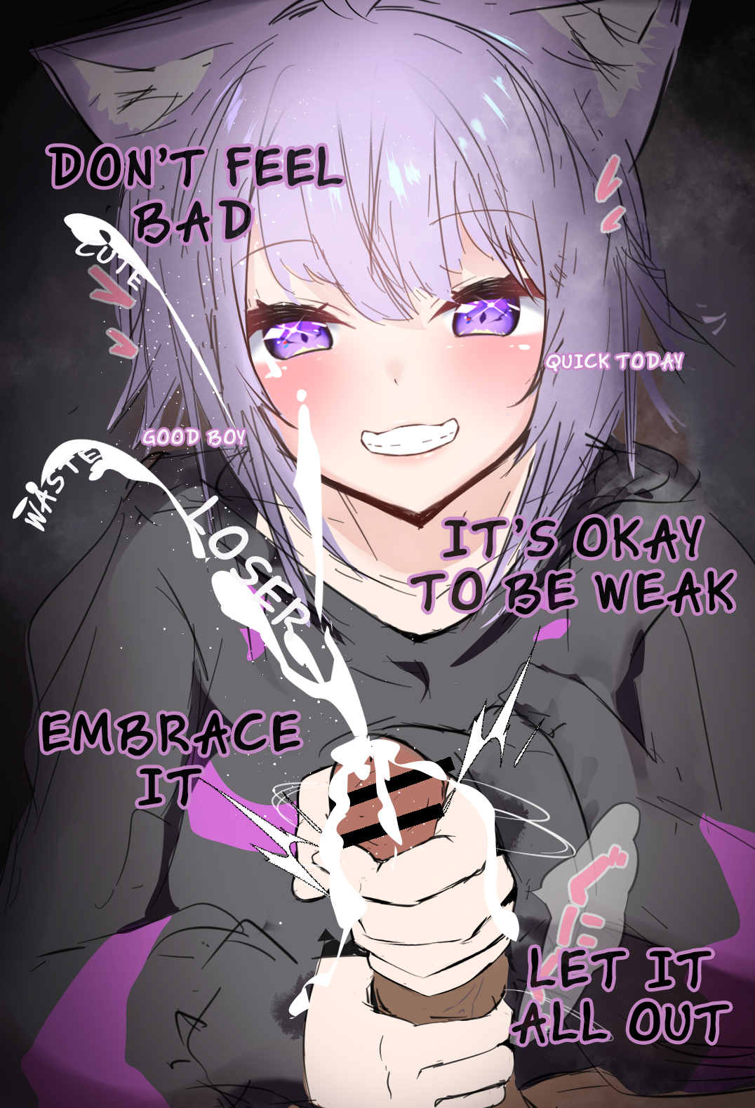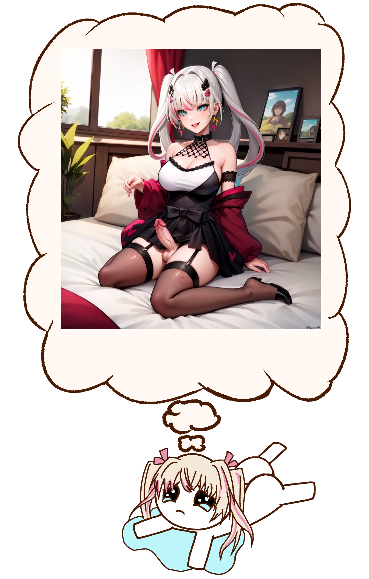 >>80658144My mind is in too much disarray to decide anything specific. Maybe shyly doing her best to masturbate with a really large toy. Or tease and play with your penis (especially the tip) with her face/hands happy and proud of you when she helps you cum a lot. Or just some close together pressing her body into you reaching towards you eye contact lovey dovey sex. Biboo is just so versatile she fits in every scenario for me I can't verbalize any of it well