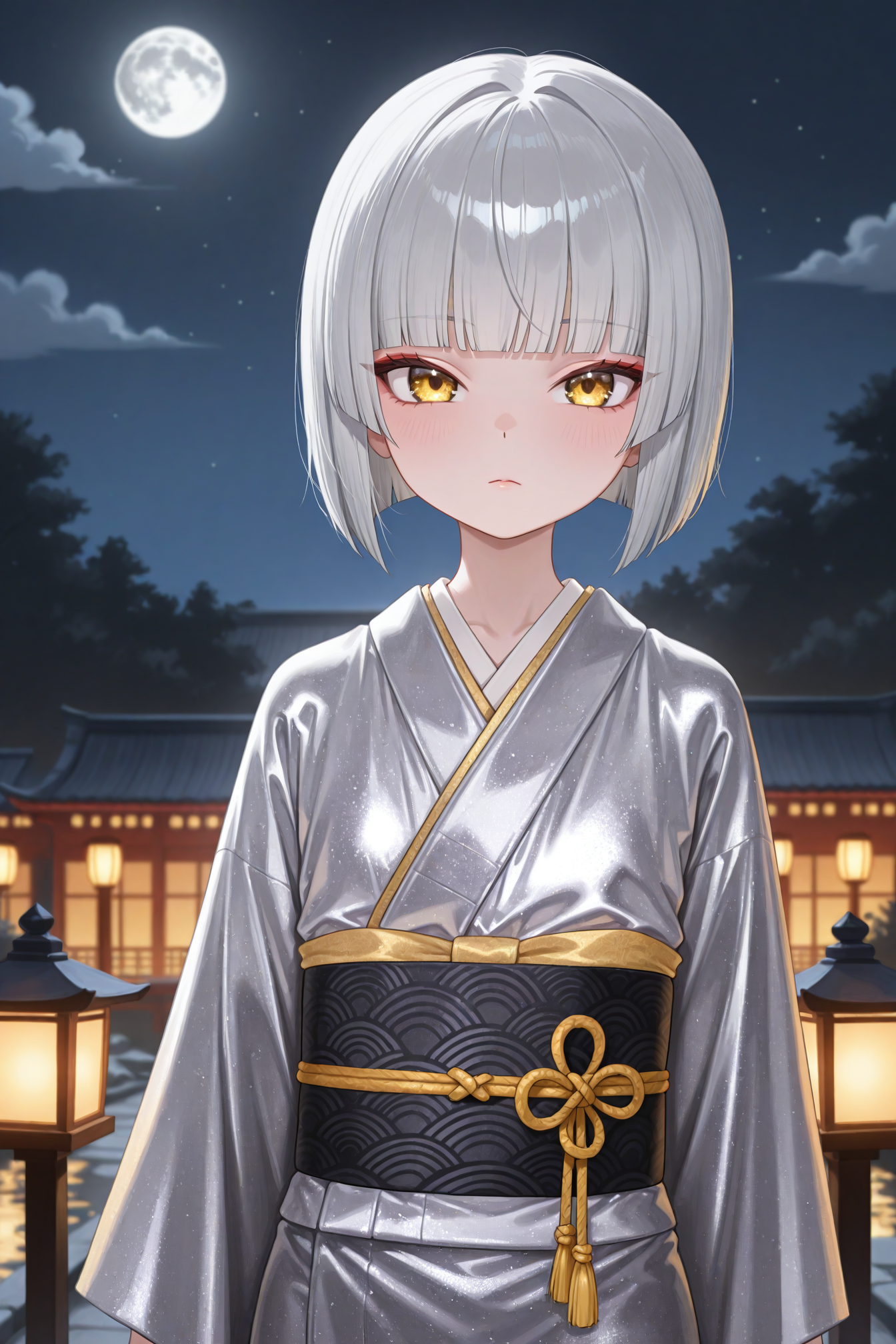 Requesting a silver haired gold eyed loli with a bobcut hairstyle and Japanese aesthetics