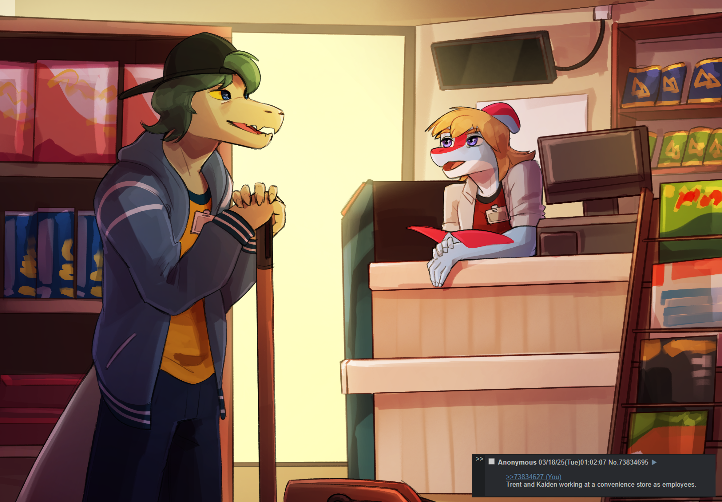 >>80665497Who are either of those characters. Not everyone is familiar with your autistic OCs anon