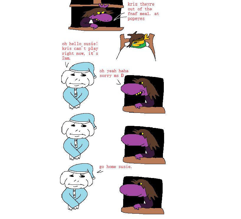 >>80678005>Or is our fate decided for us, because it has already happened many times.This does to me lend to my theory that Kris already knows everything that happens and has tried and failed over and over to stop Susie from doing something that causes the Roaring