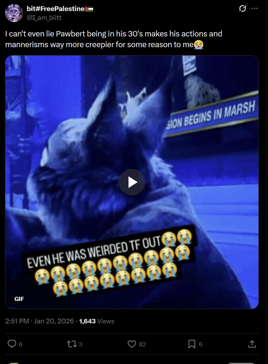 Twitter trannies are losing it after finding out Pawbert is a grown up man.