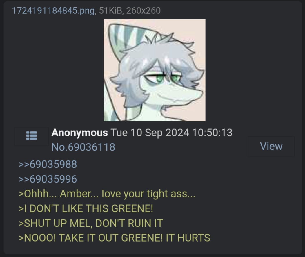 >>80697464She'd join in. Amber from Fang, Greene from Sam.