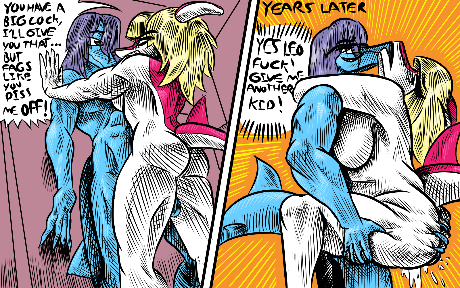Snoot and Wani but saurians are an all female species who can reproduce bisexually