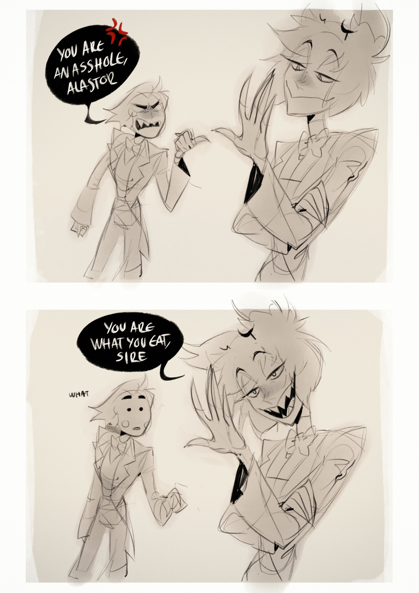 what would happen if meat and pery had to fuck Alastor to leave a room?