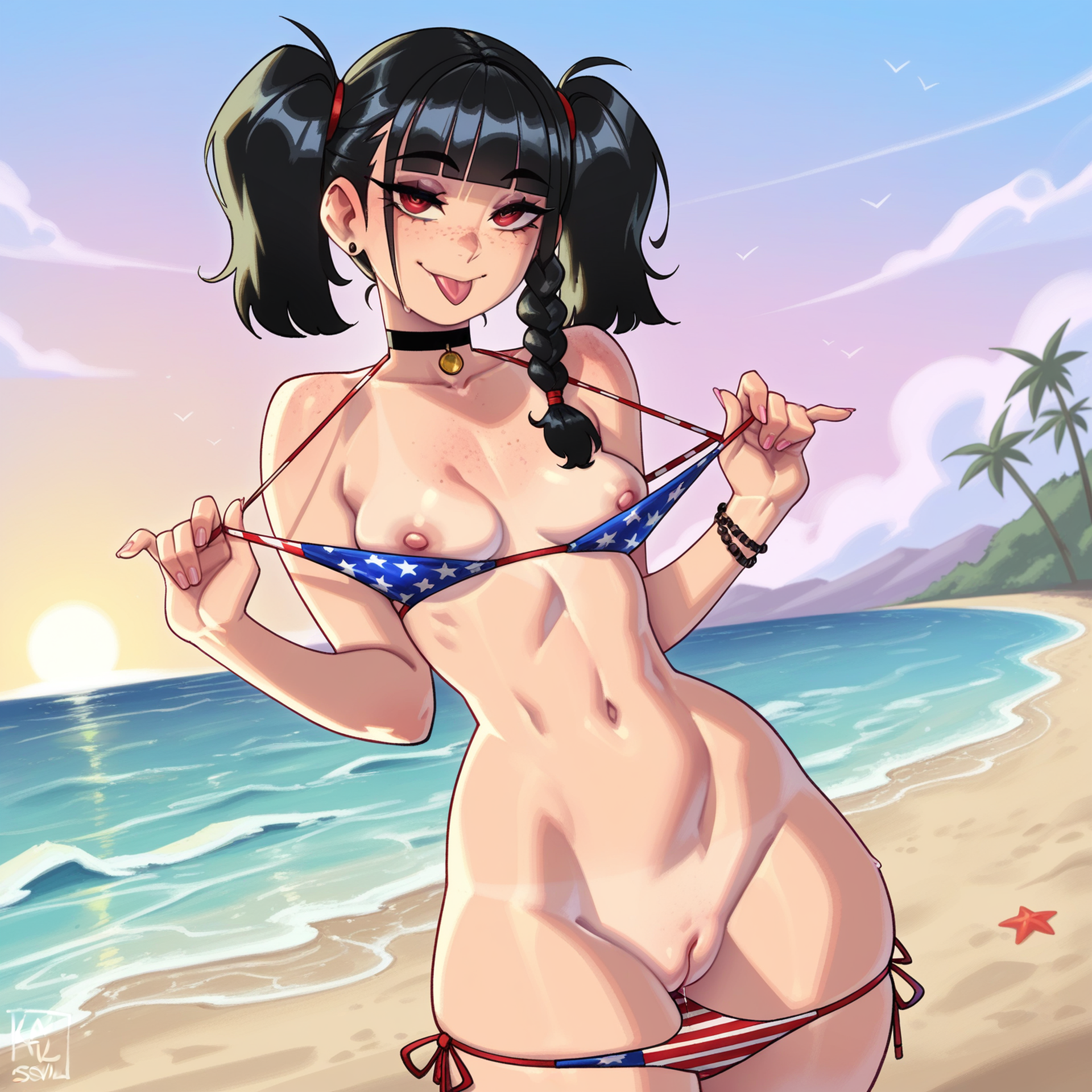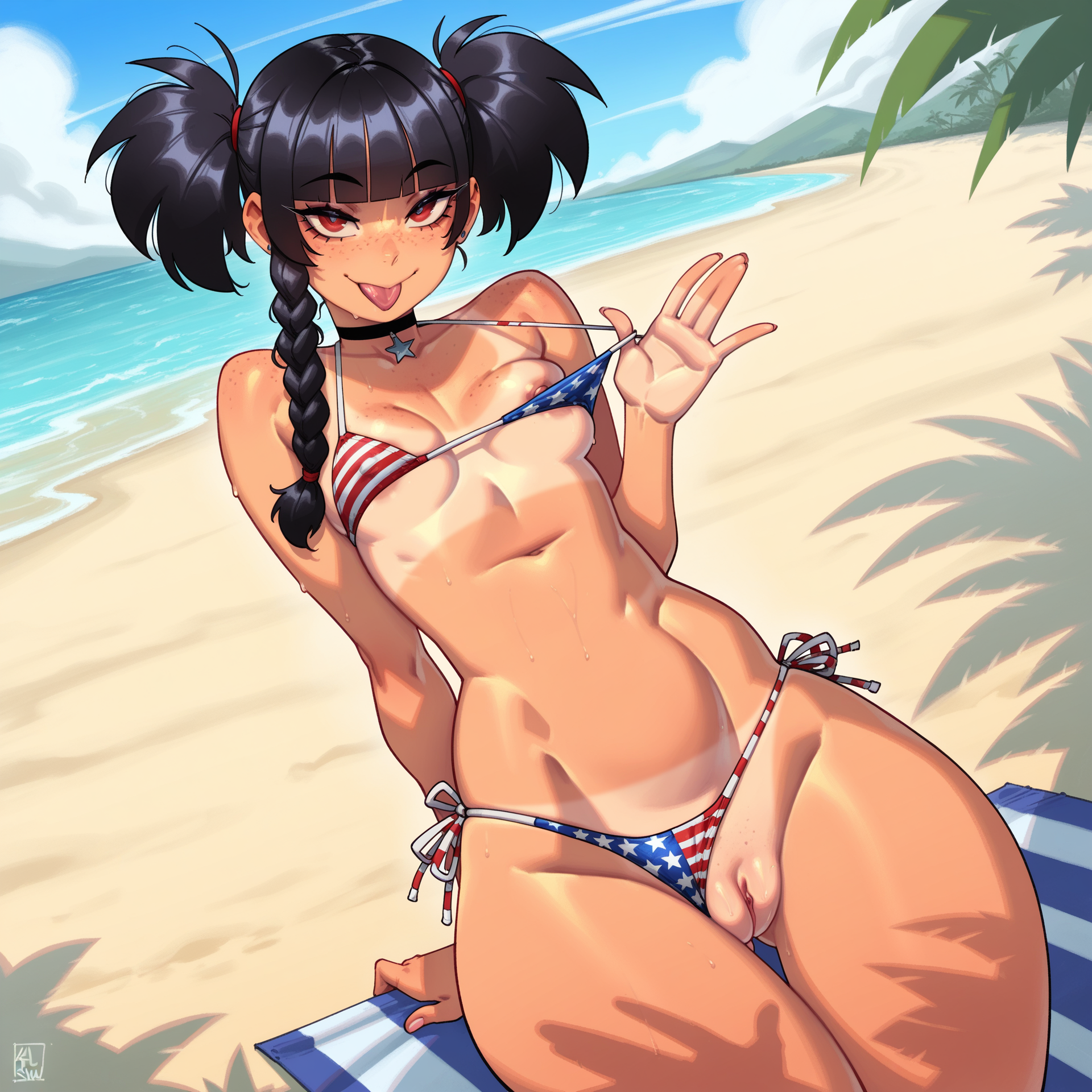 >>80814321wtf everything about this is so perfect and lewd, but that tongue poking out and that teasing look is getting me down bad for her>>80814360pouty faces are cute too, meet her in the middle and give her a really skimpy and tight bikini and make her wish she was just nude