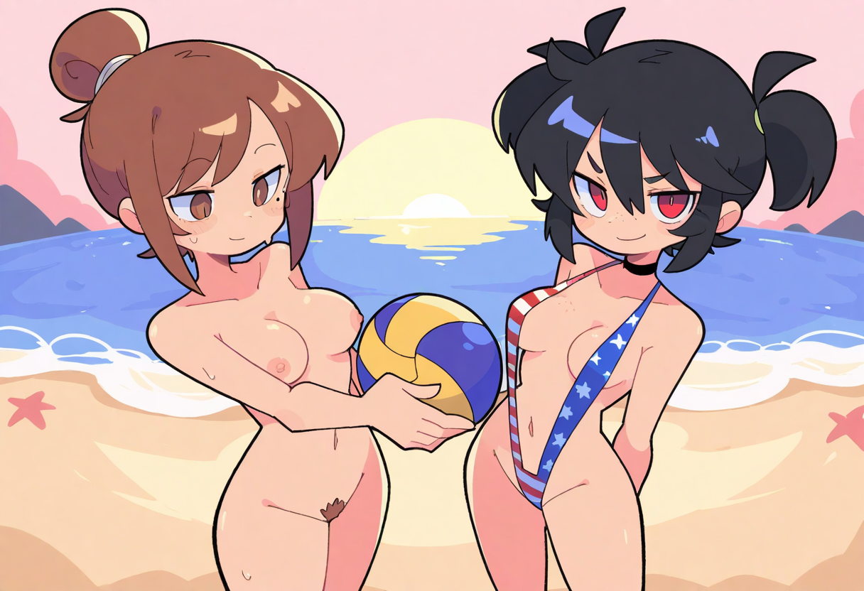 >>80814249Don't wanna get skin cancer!>>80814216>>80814282Just two exhibitionist cuties having fun at the beach!
