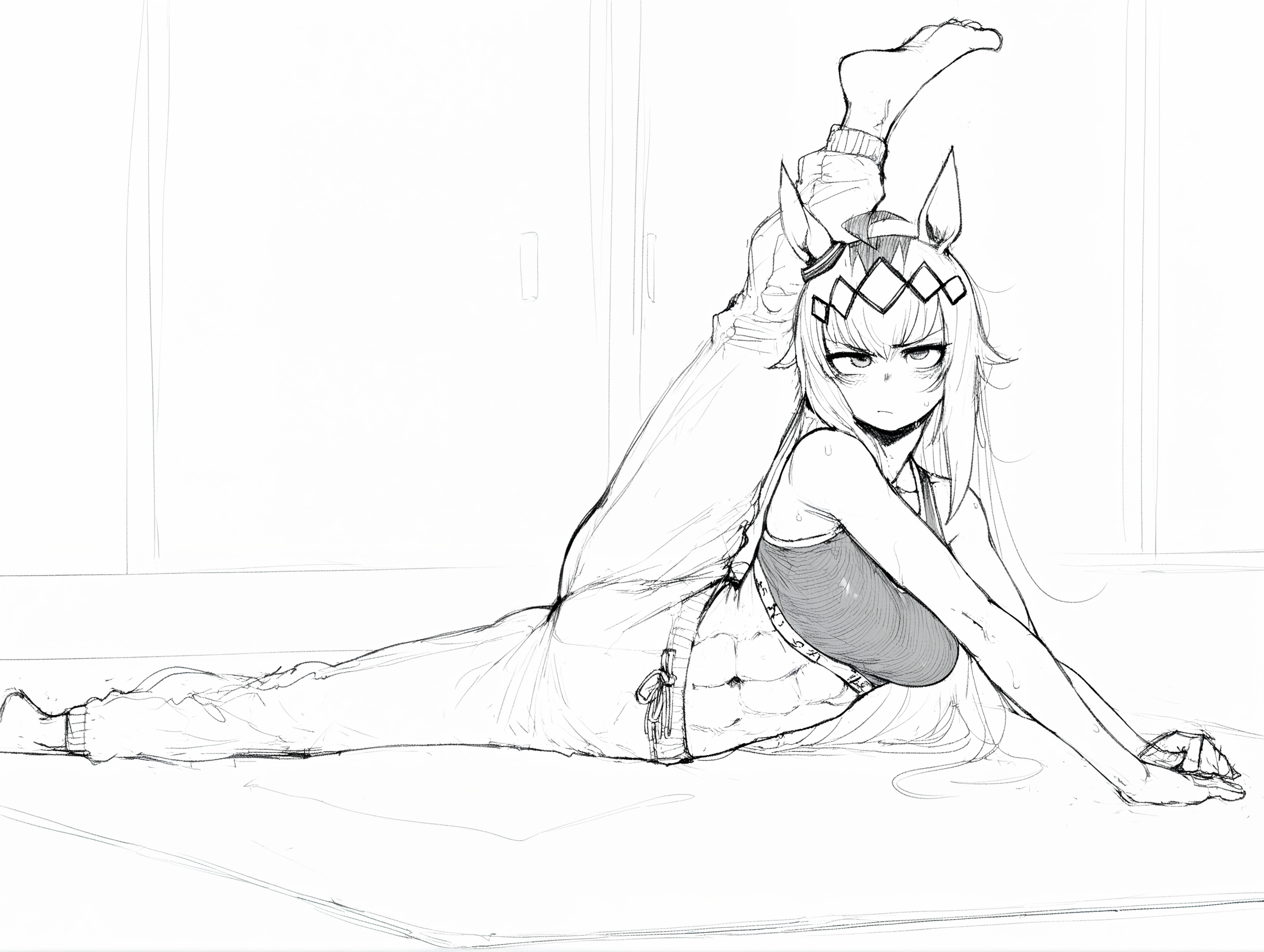 >>80869949Socks are cute! Especially when cute tired girls in a tank top and dolphin shorts wear them! Cute ahoge and necklace!