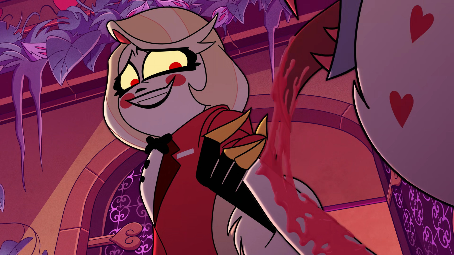 >"Oh so cute Princess! Think you can redeem me?! I've been raping Angel Dust's whole LIFE! He was drugged when he signed the contract with me! And it's so hilarious I will laugh in your face, at you and your pathetic notion of redemption!"*Charlie suddenly lunges forward and stabs his chest repeatedly*