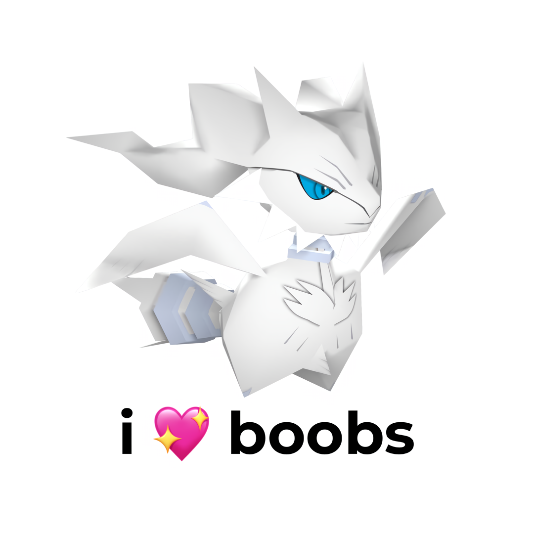 one last fix lmaorequesting a busty Reshiram wearing only a baggy shirt with the "i <3 boobs" pic printed on it.