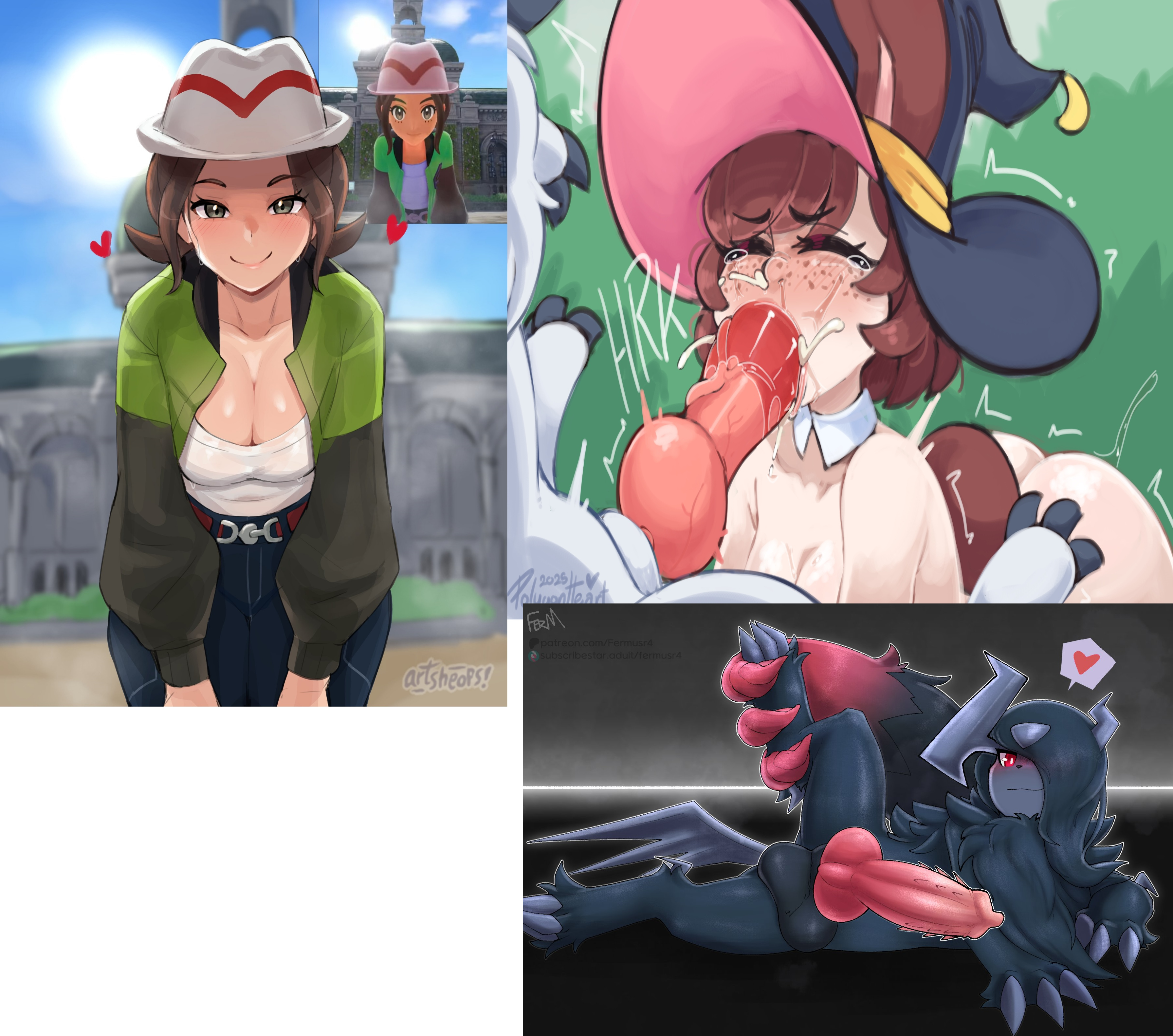 Requesting BBW Dragonite getting pounded missionary style by one of the hung starters on the bottom right.