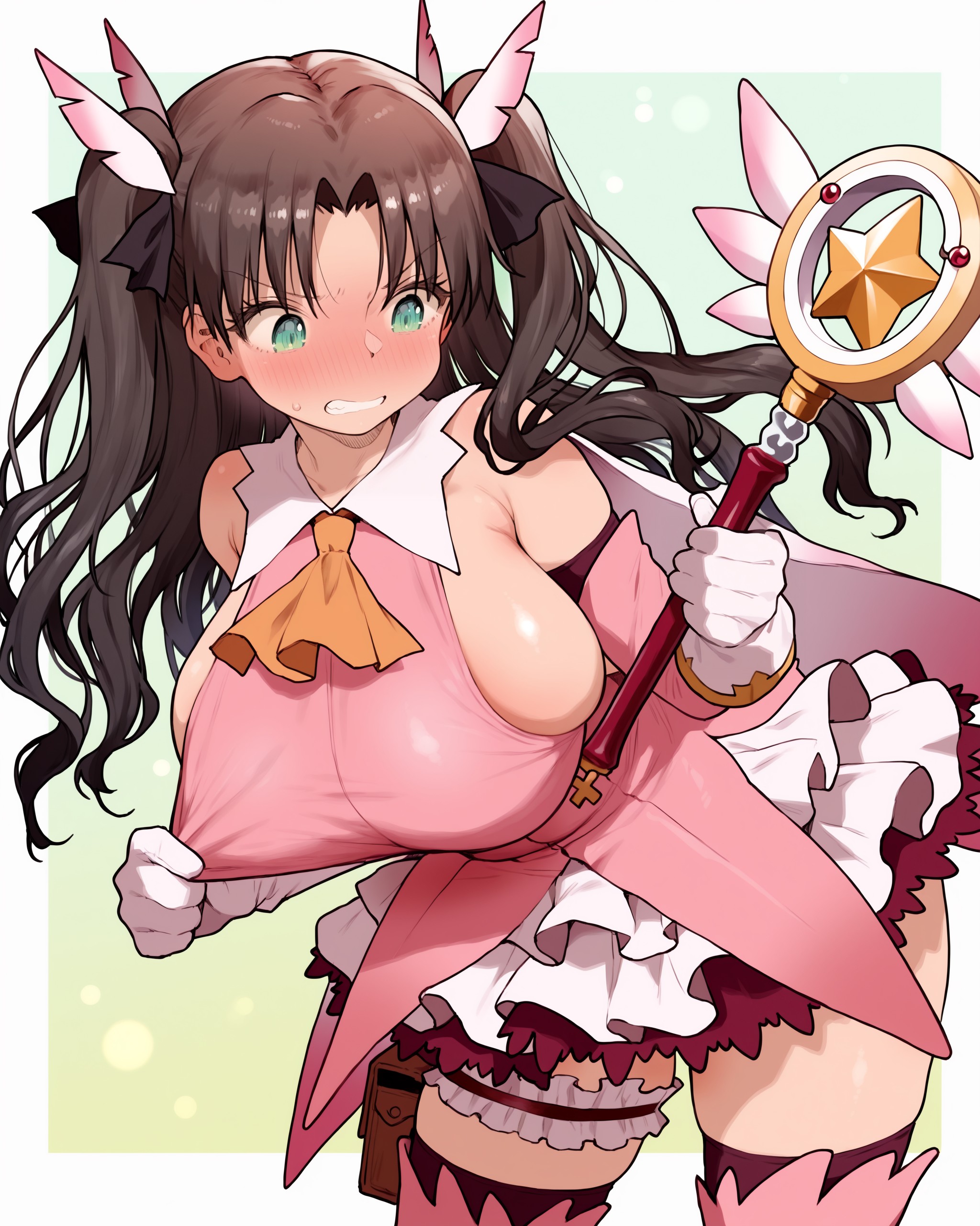 >>80980643Requesting a huge breasted Rin Tohsaka trying on Illya's magical girl costume while having a look of embarrassment on her face