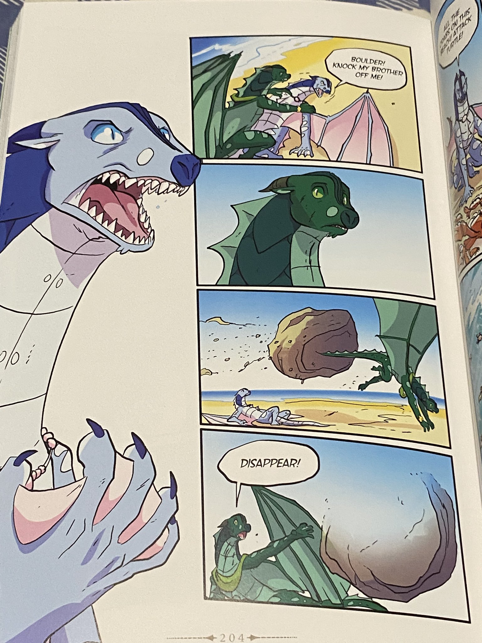 Reading the Talons of Power GN made me remember that I was excited by the return of Albatross in the book's epilogue, only for it to end up being solved off screen in the next book.I wanted to see Albatross meeting Turtle (who looks like Fathom) and Anemone (who like him was forced to be a magic servant for the queen).