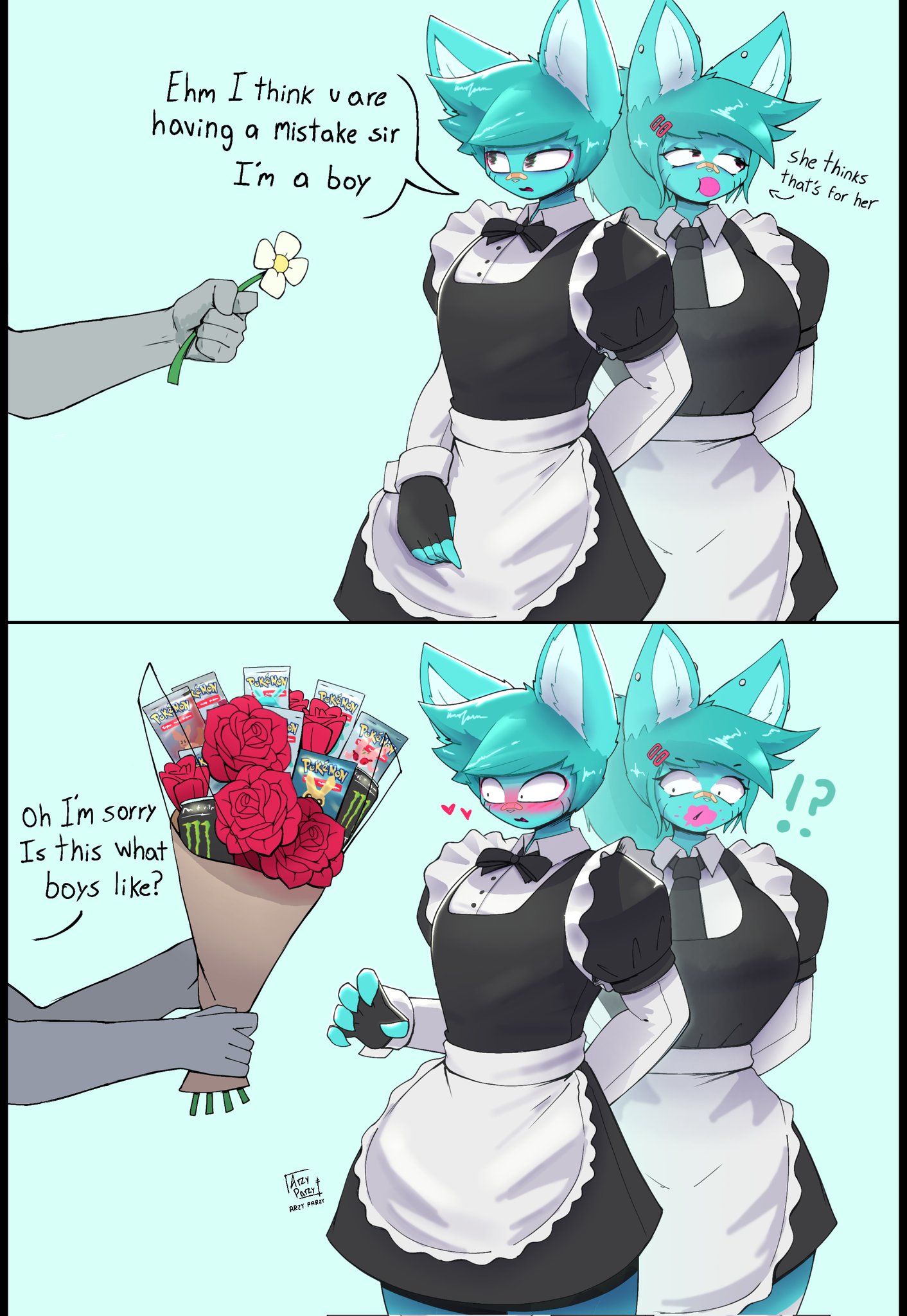 >>81131680The artist draws everyone with the anatomy of a pool noodle.>>81131877He's 19 but draws like an early 2000s emo kid on Deviant art, which I find funny.