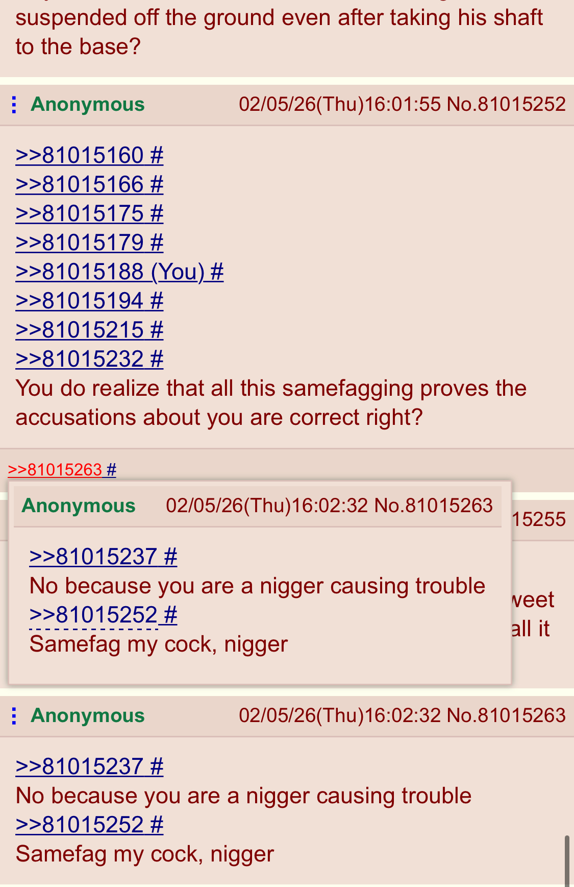 >>81015237No because you are a nigger causing trouble >>81015252Samefag my cock, nigger