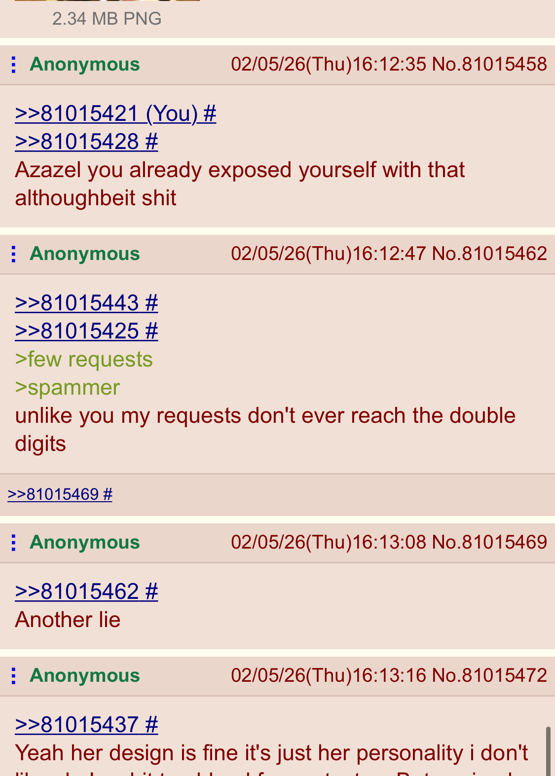 >>81015328not while botfag keeps trying to police the threads over his drawthread bully
