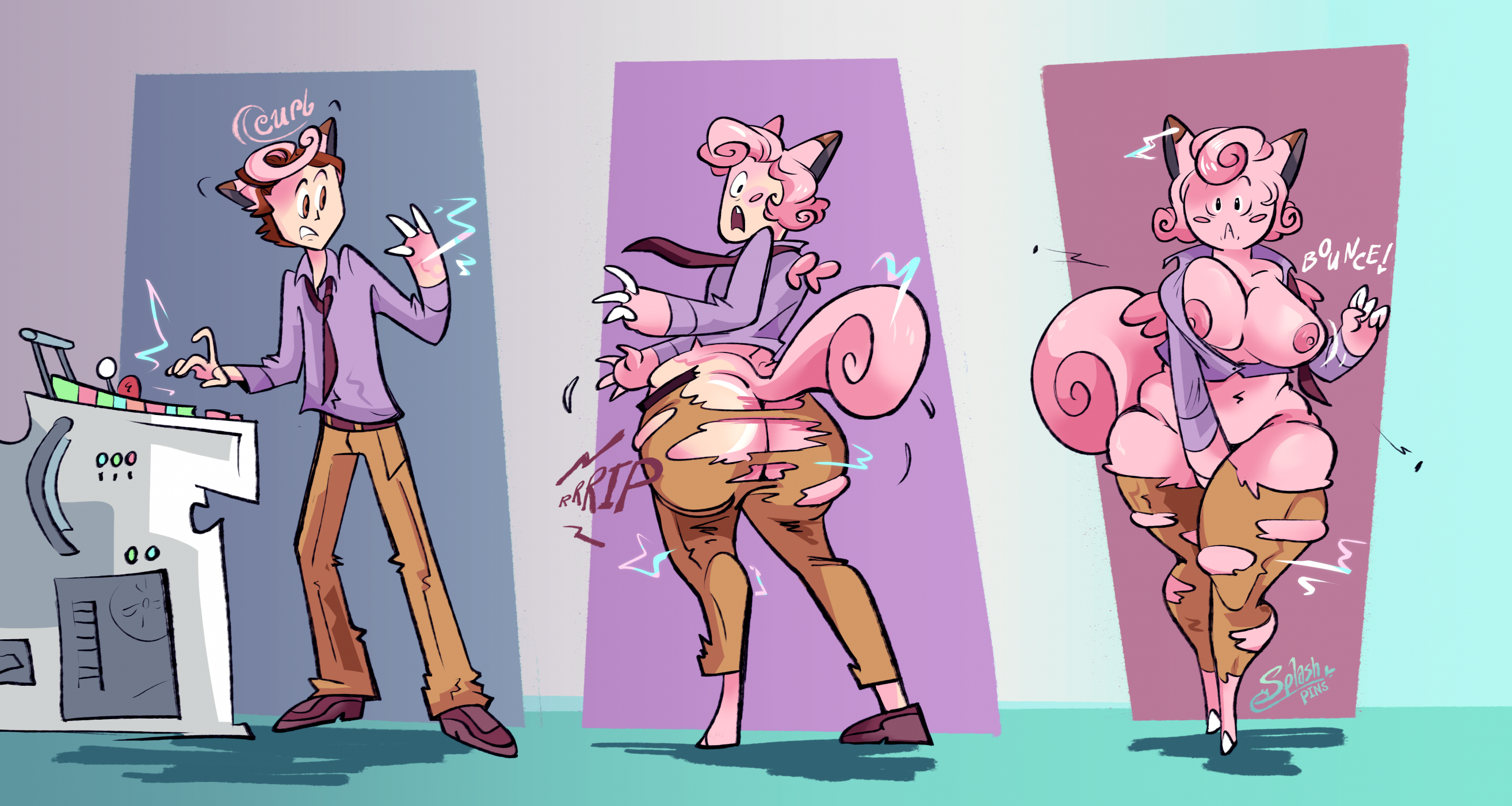 Anyone have those TF sequences where a furry character gets their appearance like, turned into a hoodie, then it gets unzipped and reveals a big breasted woman underneath? I thought I saved some for references but I can't find them anymore.