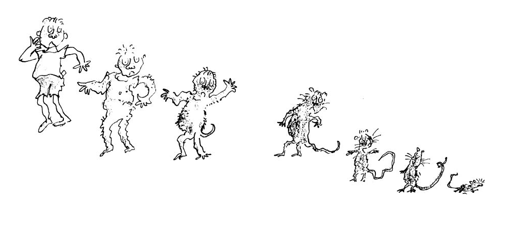 >>81090748I just downloaded the book so I could reread and post the transformation descriptions, and I never knew just early in the book it the protagonist gets transformed. I read the book back in like grade 4 (which is probably one of the reasons why I'm in this thread), and I always remembered it happening close to the end of the book, but it actually happens right in the middle.There's 3 major transformation scenes in the book, some dickwad kid named Bruno who's depicted >>81090580 that the protagonist watches transform as part of the witches' demonstration of their plan to give kids laced candy and chocolate that will transform them into mice at a specific time so that they will end up getting unwittingly killed by their teachers and parents.>I could have sworn I heard an alarm-clock ringing. I saw Bruno jump. He jumped as though someone had stuck a hatpin deep into his bottom and he yelled ‘Ow!’>He jumped so high that he landed on a small table up there on the stage, and he started hopping about on the top of this table, waving his arms and yelling his head off. Then suddenly he became silent. His whole body stiffened.>“The alarm has gone off!’ shrieked The Grand High Witch. “Che Mouse-Maker is beginning to vurrrk!’ She started hopping about on the platform and clapping her gloved hands together and then she shouted out,>"This smelly brrrat, this filthy scum>This horrid little louse>Vill very very soon become>A lovely little Mouse!’>Bruno was getting smaller by the second. I could see him shrinking. . .>Now his clothes seemed to be disappearing and brown fur was growing all over his body...>Suddenly he had a tail...>And then he had whiskers . . .>Now he had four feet . . .>It was all happening so quickly .. .>It was a matter of seconds only...>And all at once he wasn’t there any more... >A small brown mouse was running around on the table top...