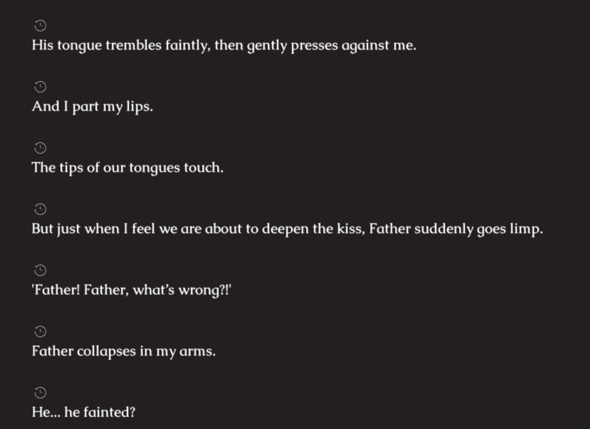 >>81094483After Stearing's blessing gets broken (Hearing Semy confess his own feelings and getting kissed by him), when he finally gets the one thing he truly wanted (being able to love his son without caring what others would think), his personality takes a shift to be much more loving and calm like he used to be when Semy was growing up. Before Stearing's incestuous feelings of love towards his son made him distance himself and grow harsh towards Semy. It's honestly pretty adorable how outwardly happy and content he is to finally be with his son.