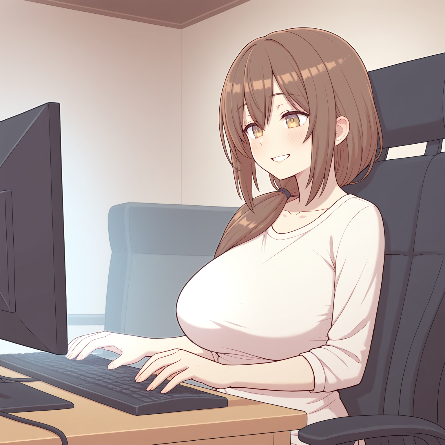 >>81064211can you make a version where she has big hefty breasts pressing them together on the cock?