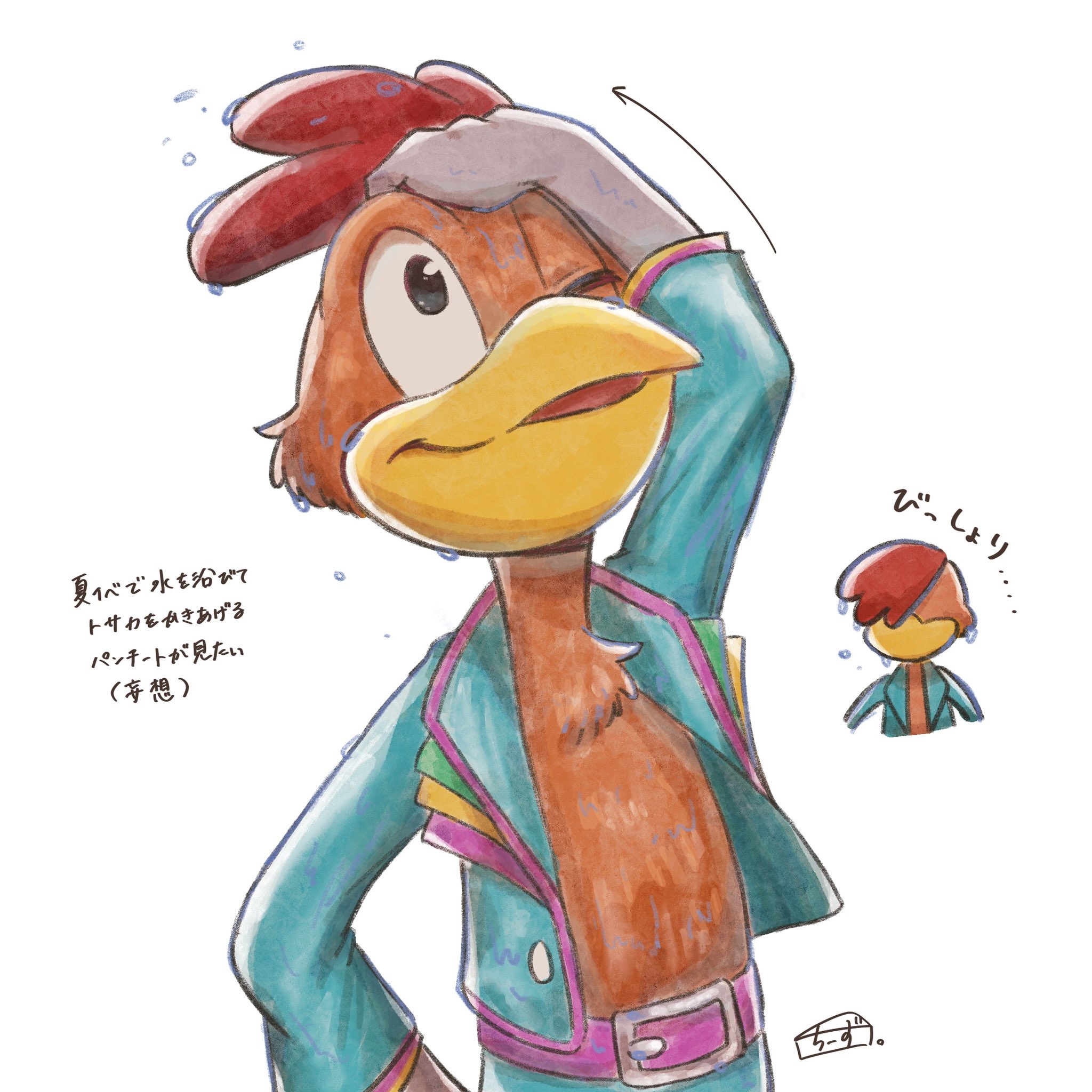 Well, a rooster and a parrot.