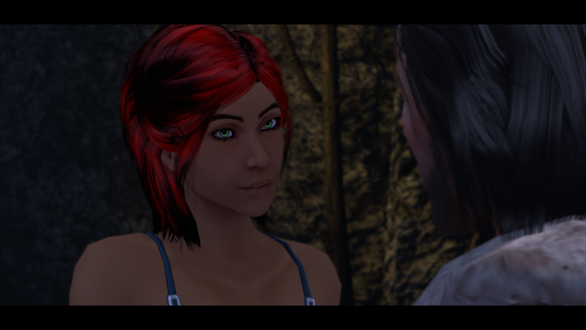 >>81079431Embarassed futa Blackfire trying to hide the erection tenting her costume from smug naked Starfire