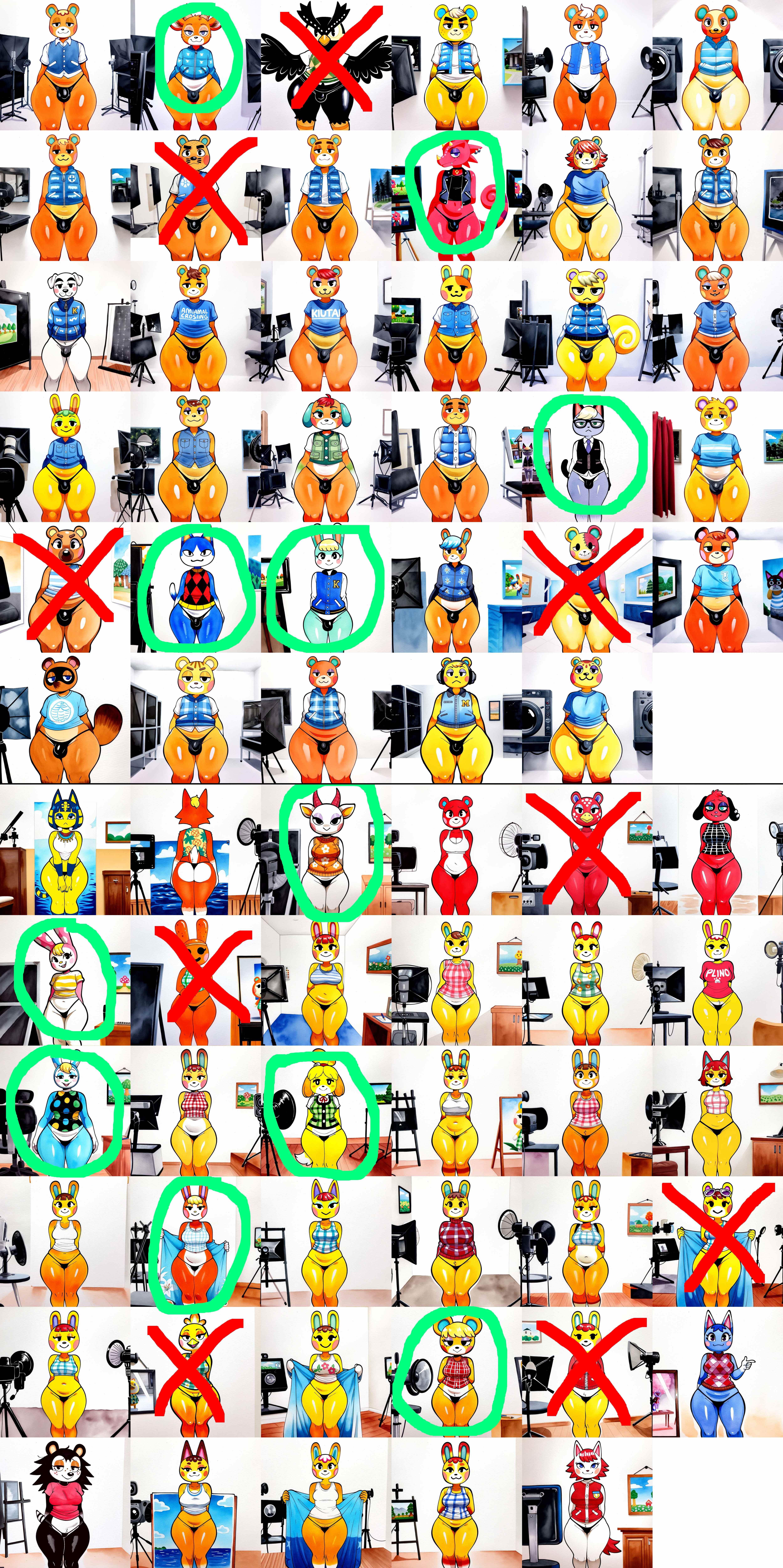 Couldn't sleep.Just going through this animal crossing grid to see who's worth genning as erotic images. Never really played the game but put the most popular characters into a couple of wildcards. A lot of similar characters.Maybe you guys could help.