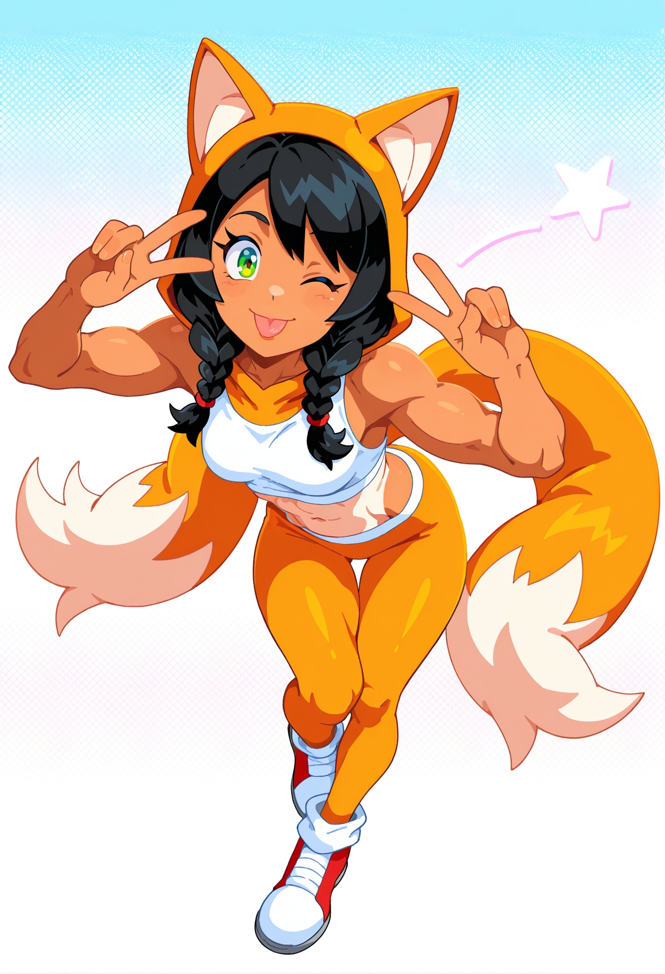 >>81086332Requesting a cute tanned tomboy girl in Tails (sonic) cosplay with her hair in twin tails.