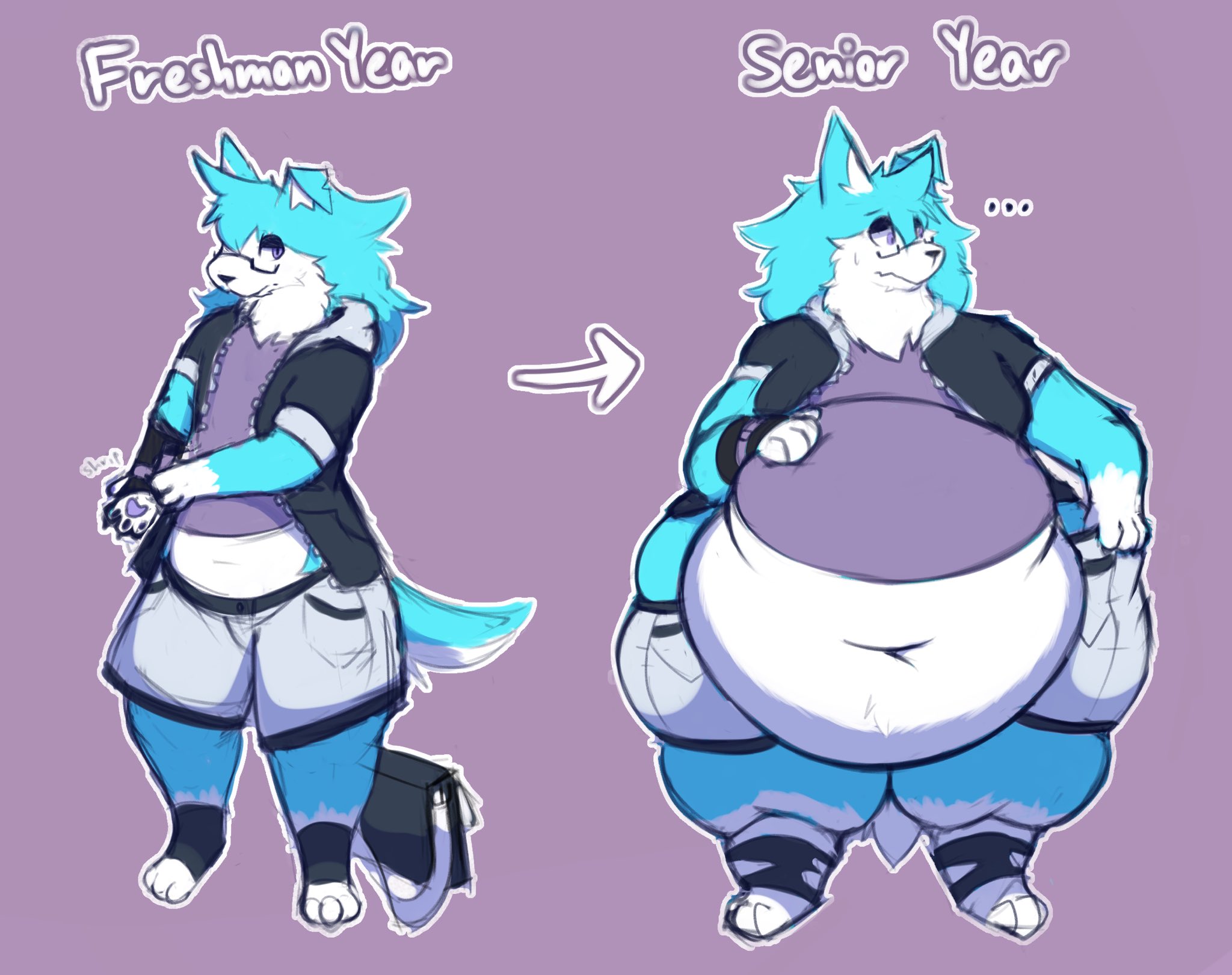 >>81116880He's already doomed to this path but an enabler will just accelerate him to the end state sooner rather than later so I say go for it. As a man finally free of his helicopter mother he'll really let go and do all the bad stuff (which for such a cream puff will be staying up as late as he wants and eating everything any time). Once that metabolism starts to dip after a few years, that's when the golden hairs start peppering his otherwise pure white pelt and that's when he really starts to stretch out. >Would he take up mostly from his mom or his dad though?I imagine his mom is gonna make sure he has some enormous hips but genuinely he will really take after his dad when that genetic timer goes off. Hefty gut and body scruff galore. And as he's already established all those bad eating habits when he could just bounce right off it the gain train is gonna be rolling downhill at full steam so we're really gonna see a goat bloat