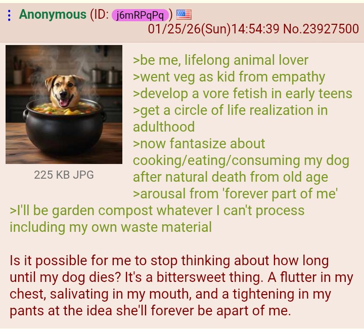 Is anyone else sexually attracted to eating animals irl? I'm going to eat my pretty girl when she eventually dies of old age.