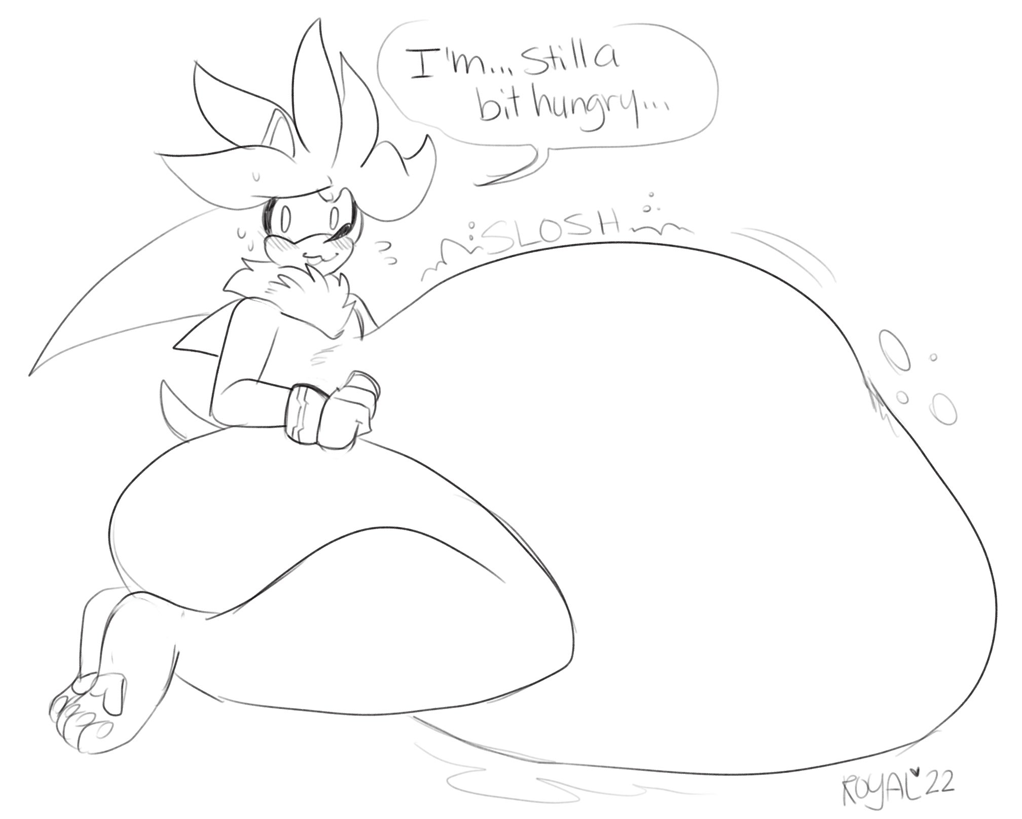 pred desperately trying to hide their full tummy, not because vore is frowned upon in their world or anything but because the prey is a freak who keeps jerking off in there