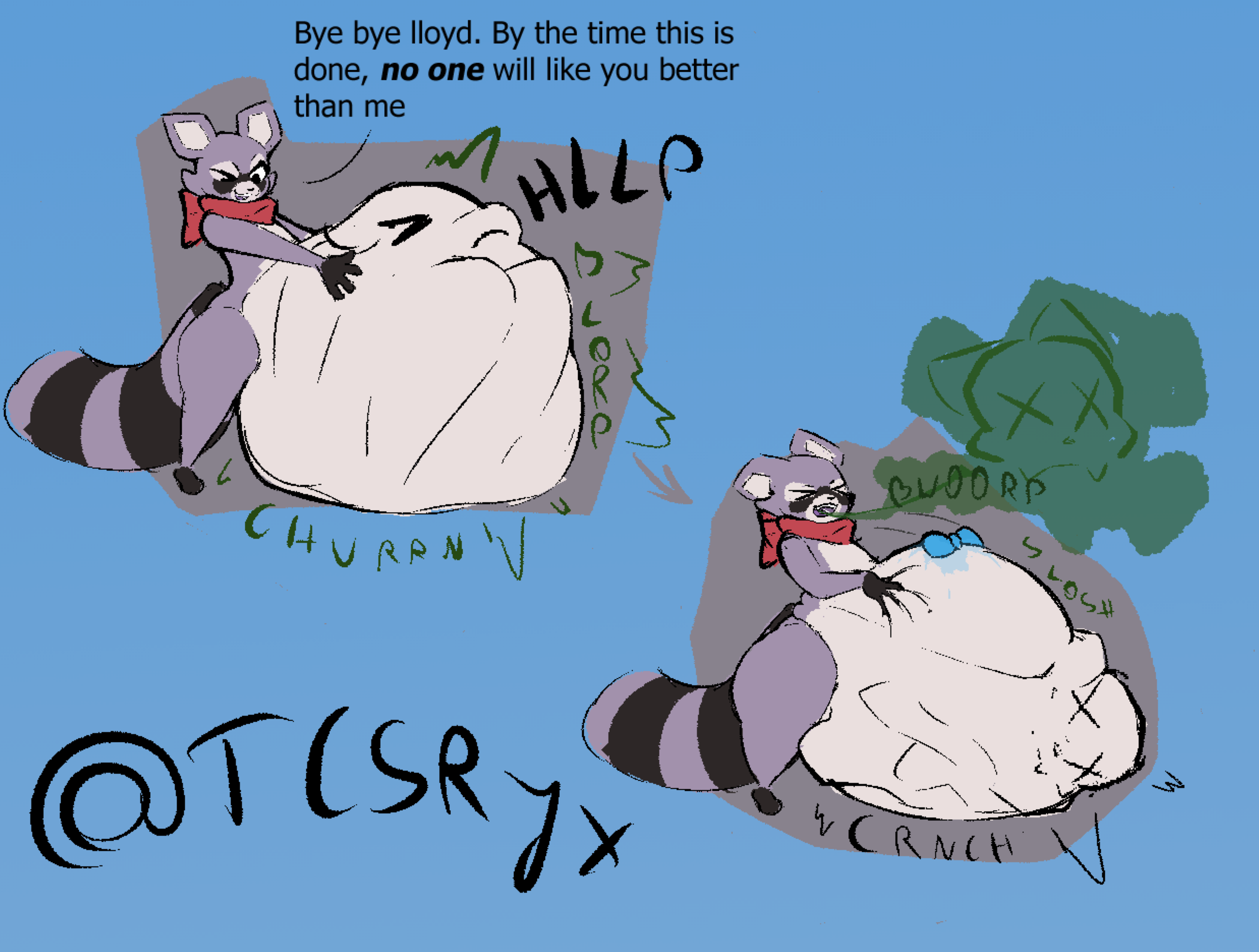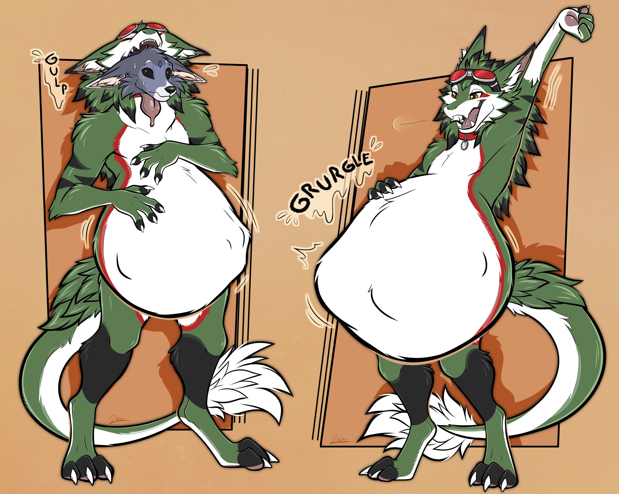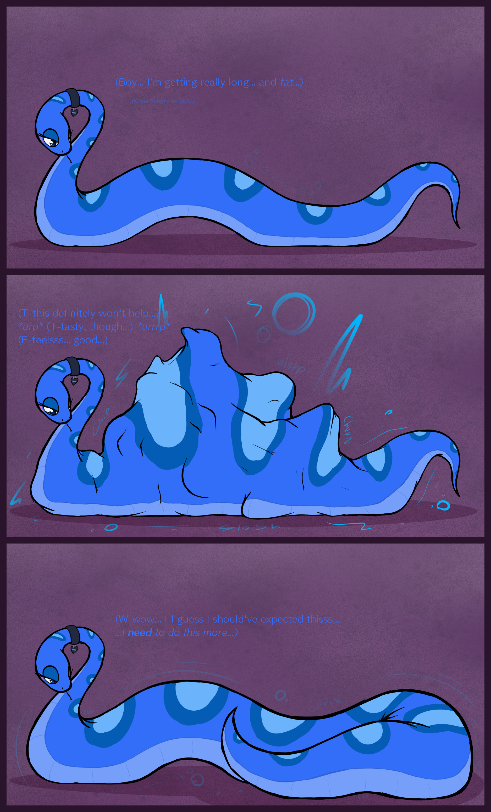>>81130896Capacity stretching/belly growth and slow burn growth that doesn't end up with the pred as macro because eating a same size prey makes them somehow twice as tall because people forget the square cube law and that biological efficiency isn't 100%.>>81130994Same, but I expect them to swallow a ton of prey before getting to that size. Spicy's done two comics about that, picrel was posted this month actually.