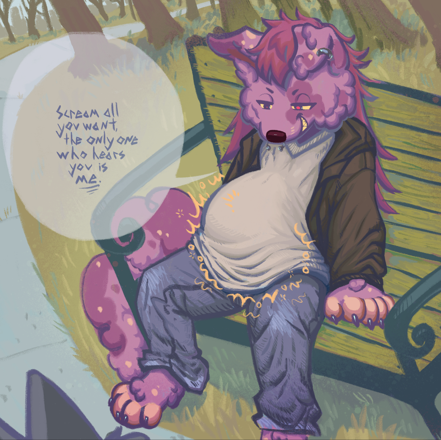 >>81114157While there a lot of pred designs that I'd happily see (and fantasize about) as apex predators, when it comes to actual personality and characterization, I can't think of many pred OCs that feel convincing in that regard. They're always lacking in some way, whether through a lack of effort showcasing why they should be considered the top dog, an overreliance on insta-win gimmicks, or just terrible writing in general.>>81119151In terms of looks and design:>sharp features like sharp teeth/fangs, claws, horns and the like>physically large and intimidating, with a muscular but lithe build; strong, but also agile and flexible>intense eyes>fluffy hair and/or fur>exotic but still reasonable use of color, especially when paired with countershaded/dual-tone bodies>beautiful, majestic, yet also menacingIn terms of character, while I could get embarrassingly specific, honestly? Just give me a well written dominant pred with some actual charisma and affection for their prey for once. That doesn't feel like it should be such a rare thing, and yet.