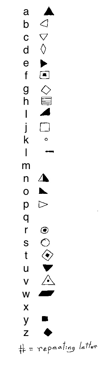 I think I got most of the cypher from the last thread solved.For instance: ◢ ━▶▲◬▶ ■◀ ◇▼■◯ ▲━◣◮▶ ▣◣◎ ▲ ▰▶#▶Roughly translates to "I leave you guys alone for a week"the cypher in the milkshake post is as follows:>◣◮▶ ◯▤◀━◊ ◅▶ ▽▲◎▶▣▼━ ◡▶◮ ▻◎▲■● ◈◣ ▣▲━◯▶ ◇◣◊◯>▢▼◯◈ ◣◮ ◈▤▶ ◣▣# ▽▤▲◮▽▶ ◈▤▶■ ▲◮◯▰▶◎which seems to be "one sh?ld be careful ?en pray? to false gods""just on the off chance they answer"I assume the second word is "should" but i'm not entirely sure about the other parts. Presumably its "when praying" but I don't know for a fact.This pictures file name is "old lacey cowkini sketch", which i hope gets finished at some point, it's really cute.