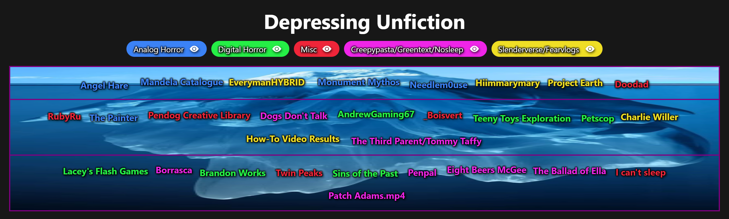/uh/ - Unfiction Horror general #227Bathrooms are an ideal warm moist environment for various bugs EditionPrevious Thread: >>80912053https://desuarchive.org/trash/thread/80912053Thread archives:https://desuarchive.org/trash/search/subject/unfiction/Go here if 4chan ever goes down again:https://boards.plus4chan.org/baw/t433714.htmlRecommended List:https://rentry.org/ApprovedUnfictionV2Archive of the unfiction forums:https://forums.unfiction.comDropbox:aHR0cHM6Ly93d3cuZHJvcGJveC5jb20vc2NsL2ZvLzI2N2kxN3B2NmpwZXV5NjExMjk0ZS9oP3Jsa2V5PXI3dWNuNHZzd3pzbzA4dzJlZnd6cGpyazkmZGw9MA==>What is UnfictionUnfiction is a form of storytelling that utilizes varying measures of interaction, immersion, or multimedia asserting in some way that it is not fiction and thus is presented in ways not typically used for storytelling.This includes ARGs, Analog / Digital Horror, Chaotic Fiction, Pseudofiction, "This Game I Found", Immersive Narratives and other types of online storytelling.Talk and discuss about new clues and videos from any projects you found or are following. Post art and lust after characters and their monsters. Discuss and brainstorm any unfiction ideas you have.OP Feature: Prehistoric Emergence