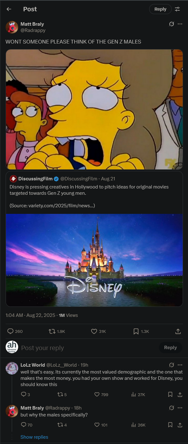 Given his reaction to Disney wanting to regain the male audience...