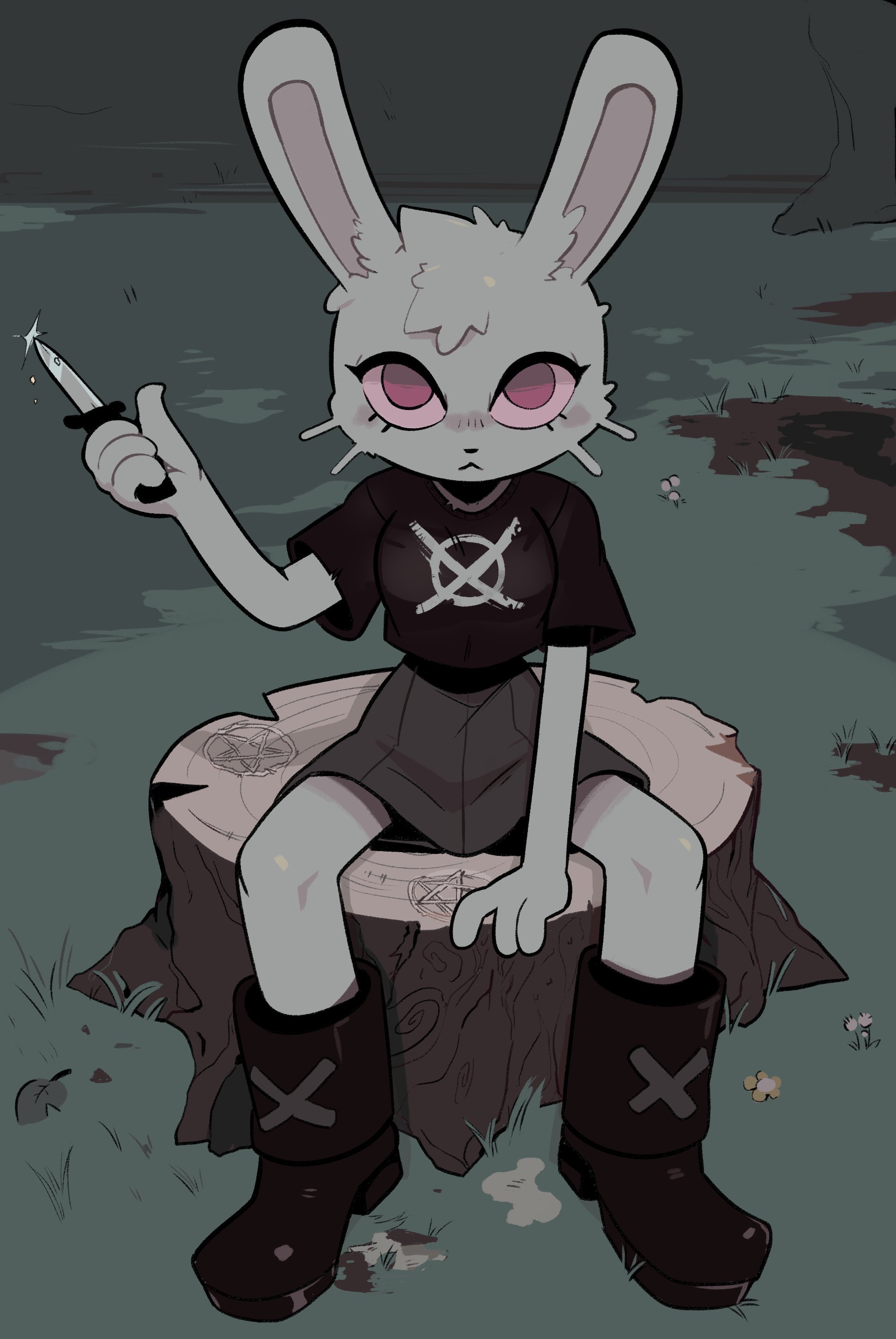 >>81203377>childhood bunfriend in a small town>grows up obsessed with the paranormal>drags (you) everywhere doing weird rituals>sneaks you out of the house one night into the woods>spooked>she pulls out a knife on you>wants to do that thing where you both cut your palm and hold hands to "blood bond">except she wants to do it over a pentagram carved on the stump>she is 100% serious when doing so, expects the bond to last FOREVERWhat the FUCK do (you) do, anon?????